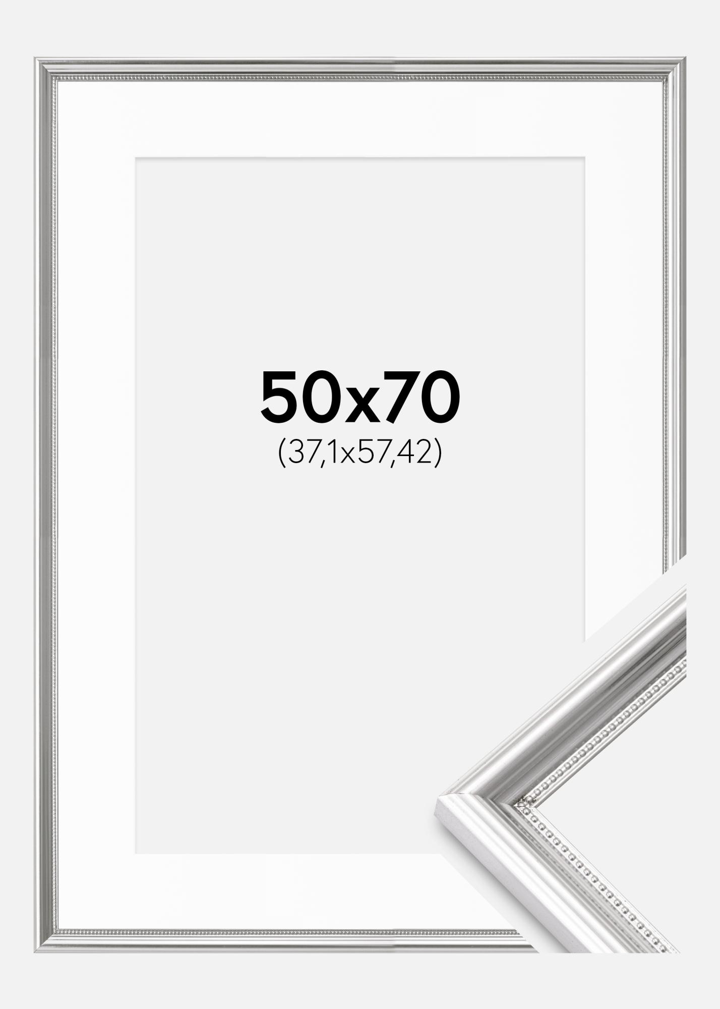 Ramme Gala Sølv 50x70 cm - Passepartout Hvit 15x23 inches