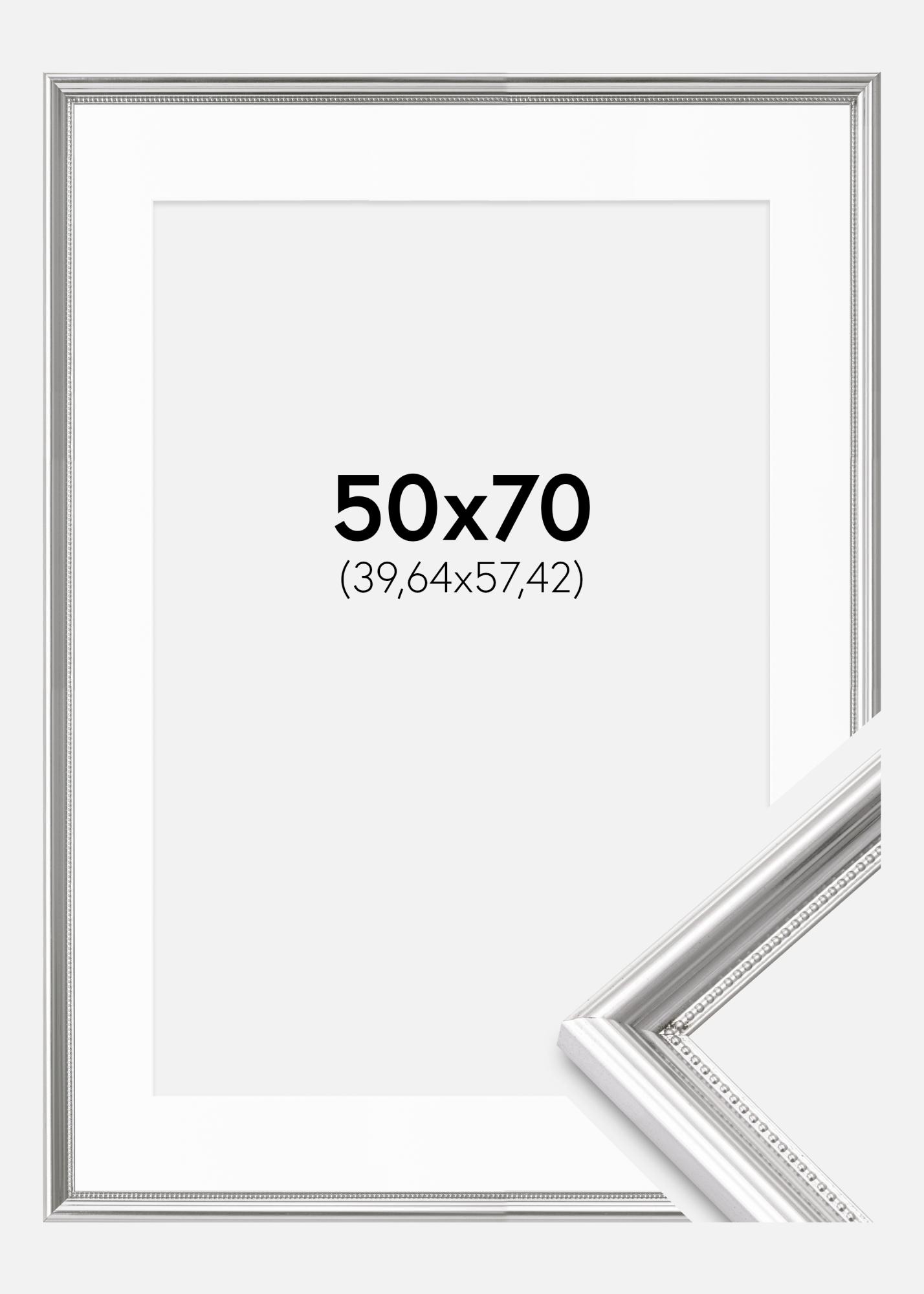 Ramme Gala Sølv 50x70 cm - Passepartout Hvit 16x23 inches