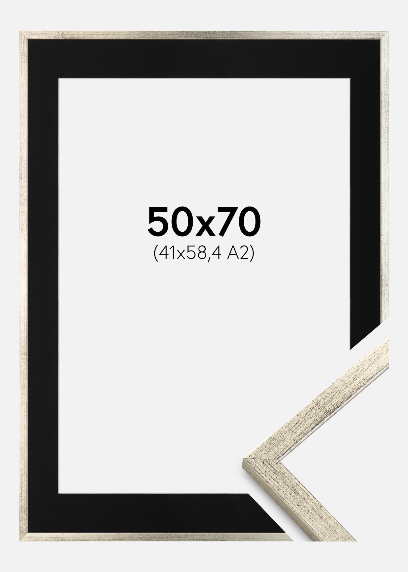Ramme Galant Sølv 50x70 cm - Passepartout Svart 42x59,4 cm (A2)