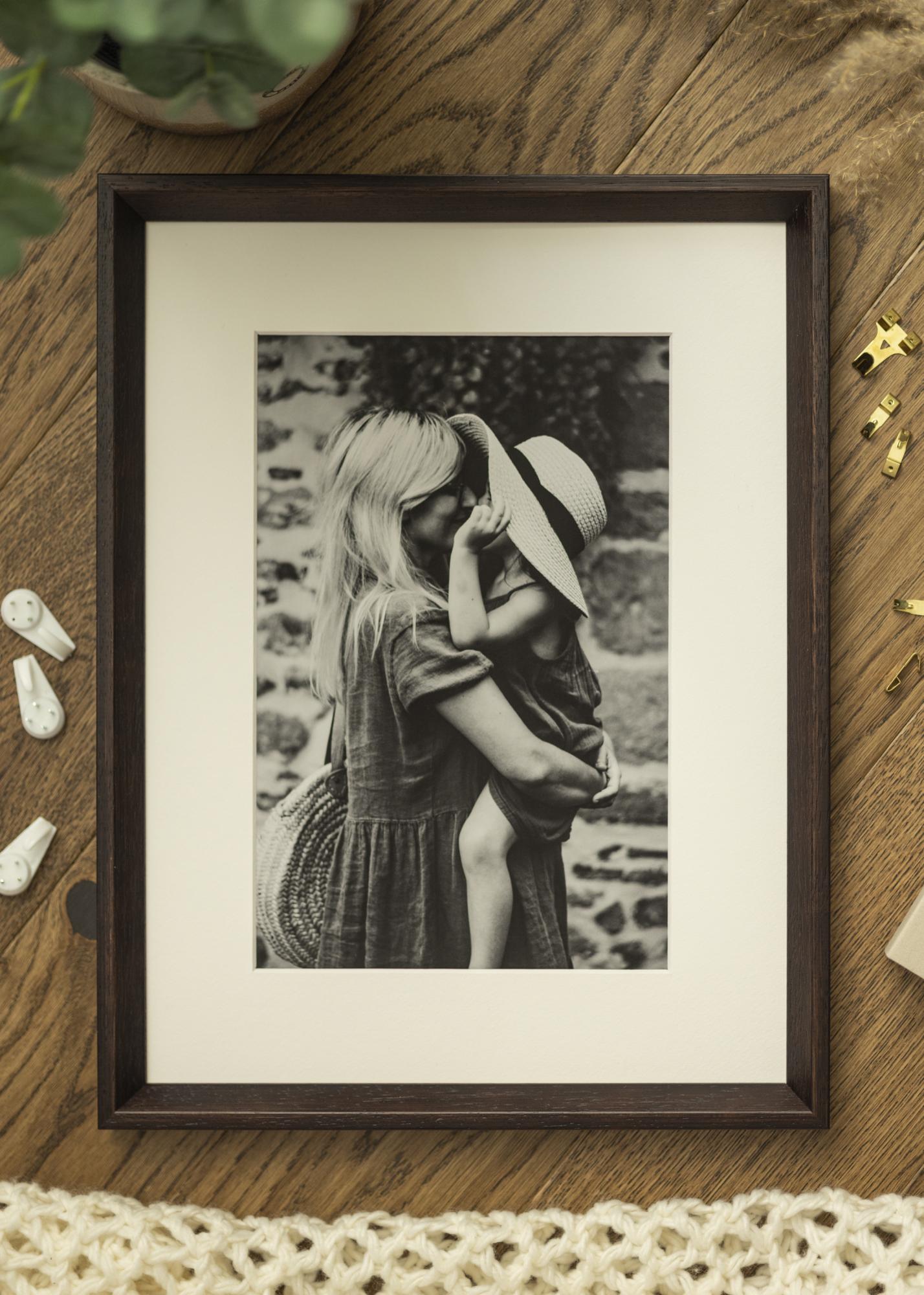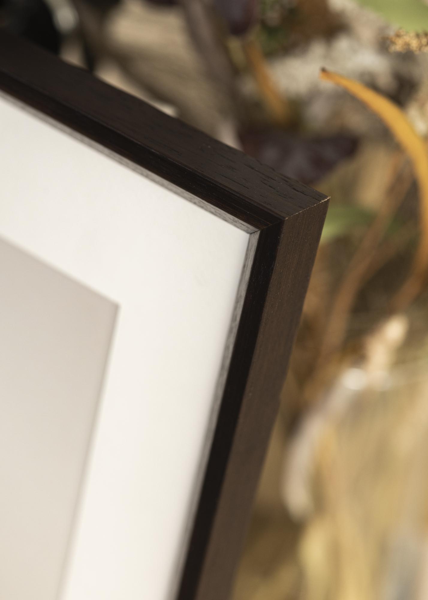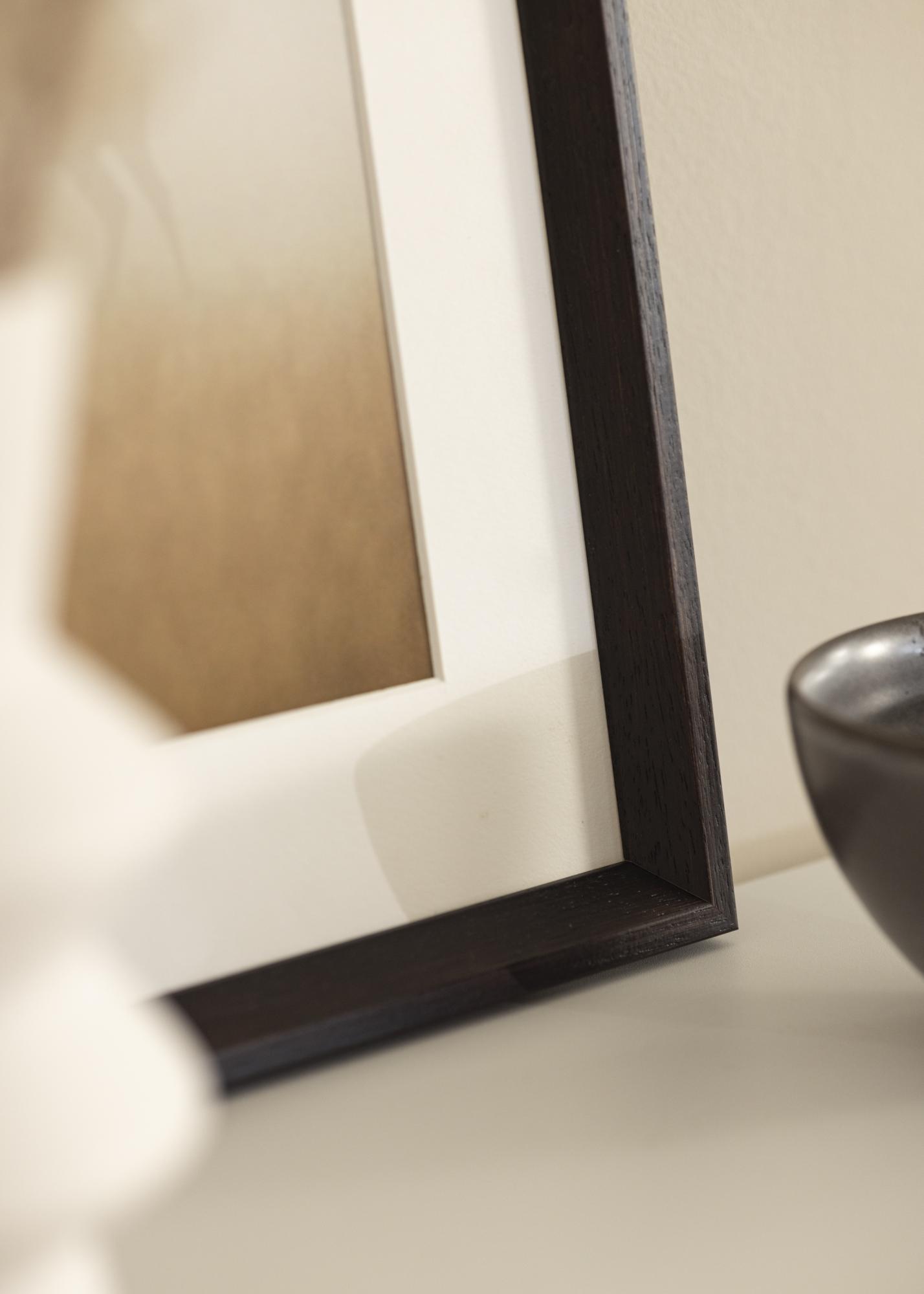 Globe Akrylglass Espresso rammer inn bildene dine på en veldig sofistikert måte. Rammen er produsert i Sverige av solid ayoustre, malt i en behagelig espressobrun farge med elegant blank finish. Det spesielle designet, med en 20 mm bred trelist med 45° kant mot motivet, gir rammen et veldig stilig uttrykk. Fargen, sammen med det sofistikerte designet, gjør at rammen passer utmerket både alene og kombinert med andre rammer med forskjellig design.