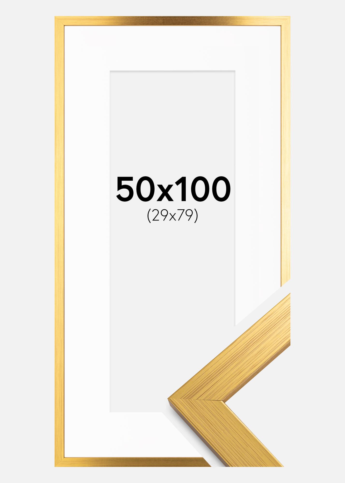 Ramme Gold Wood 50x100 cm - Passepartout Hvit 30x80 cm