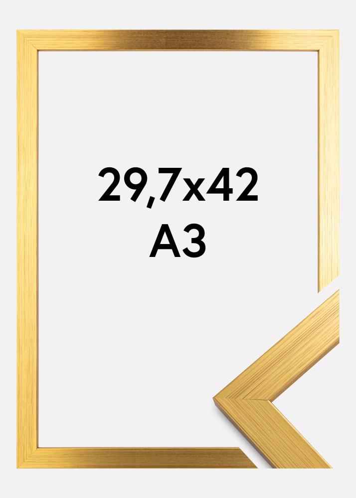 Oppdag den elegante og stilige 29,7x42 cm (A3) gullfargede rammen, en perfekt innramming for dine A3-format kunstverk og fotografier. Med en klassisk gulltone gir denne fotorammen en luksuriøs følelse til hvert bilde den omfavner. Laget i Sverige, kombinerer denne bildeformen tradisjonell håndverk med moderne design.