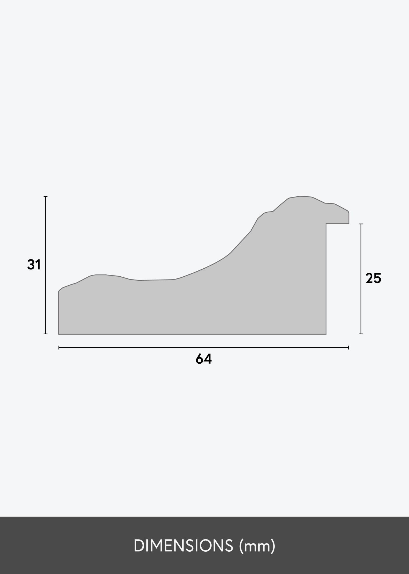 Denne bilderammen har en 64 mm bred rammeprofil og en dybde på 31 mm, som gir en robust og imponerende innramming. Laget av komposittmateriale, kombinerer den holdbarhet med stil. Rammens design gjør den til et utmerket valg for å fremheve alt fra familiebilder til kunstverk, og den kan enkelt tilpasses etter dine spesifikke behov.
