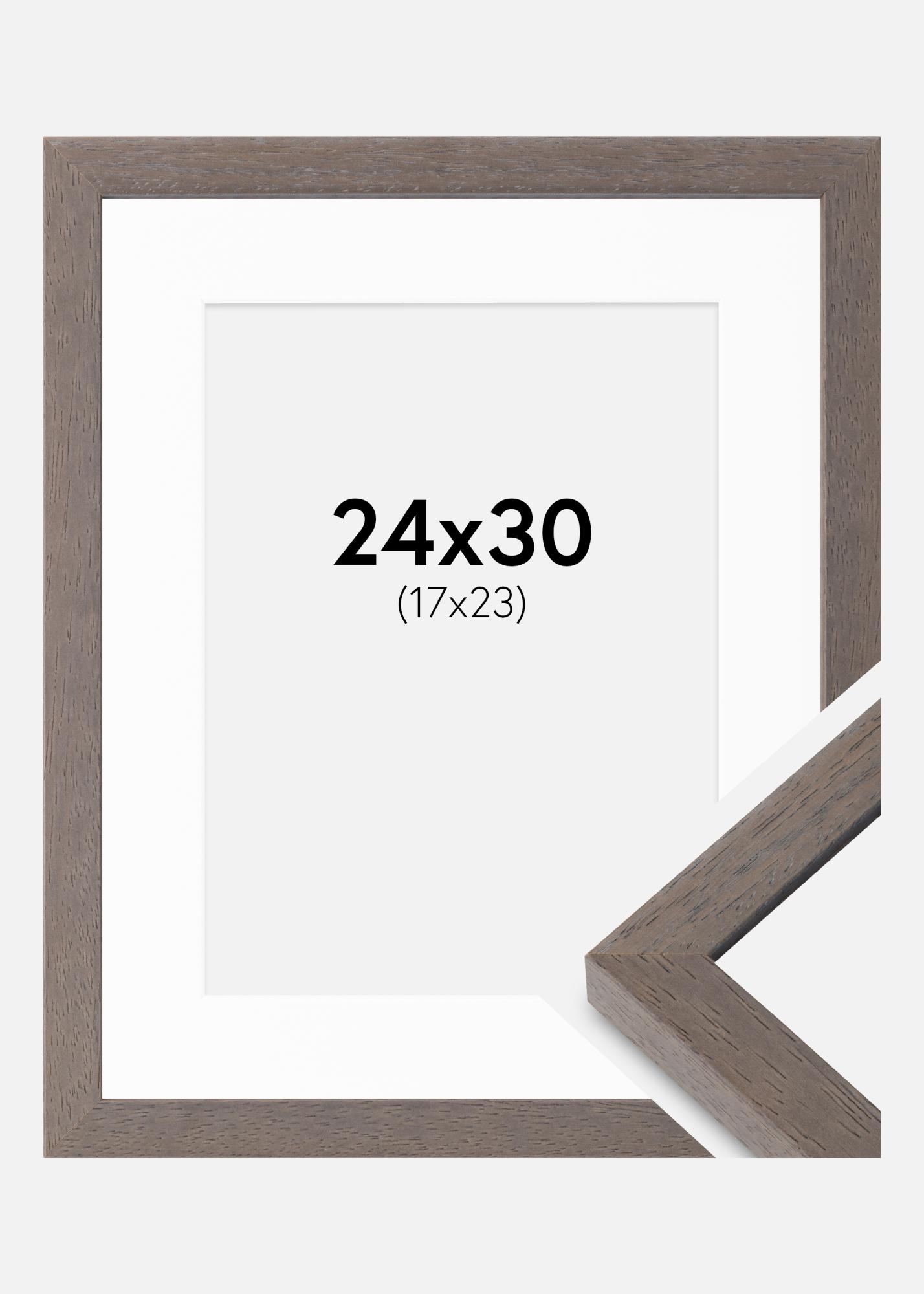 Ramme Hermes Grå 24x30 cm - Passepartout Hvit 18x24 cm