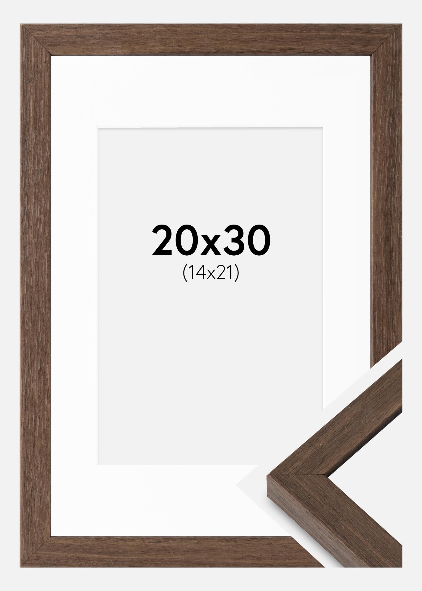Ramme Hermes Valnøtt 20x30 cm - Passepartout Hvit 15x22 cm