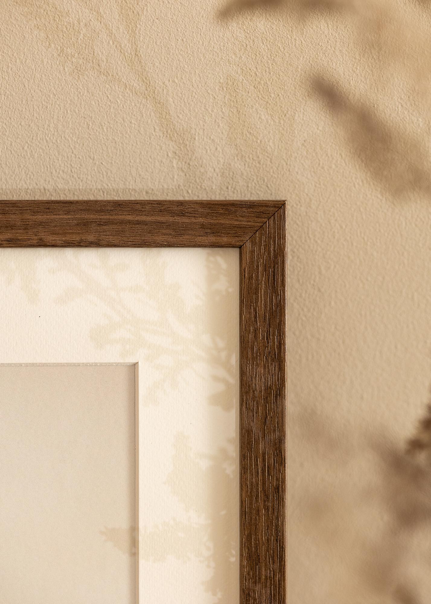 Denne rammen er spesielt utformet for å passe bilder i størrelsen 55x70 cm og kommer med en hvit passepartout som gir en ekstra dimensjon til bildet ditt. Passepartouten fungerer som en elegant overgang mellom bildet og rammen, som skaper en visuell ro og trekker blikket mot motivet. Det er en utmerket måte å fremheve detaljer i bildet ditt og gi det et profesjonelt utseende.