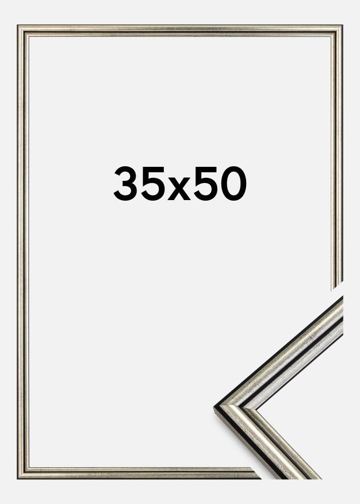 Oppdag elegansen og det sofistikerte designet med vår 35x50 cm sølvramme, perfekt for å fremheve dine favorittbilder eller kunstverk. Denne fotorammen er en stilig detalj i ethvert rom, med sine subtile svartspraglete innslag og sorte linjer som gir en unik karakter.