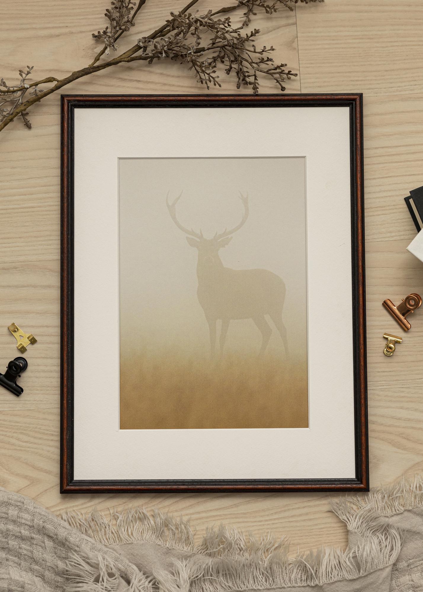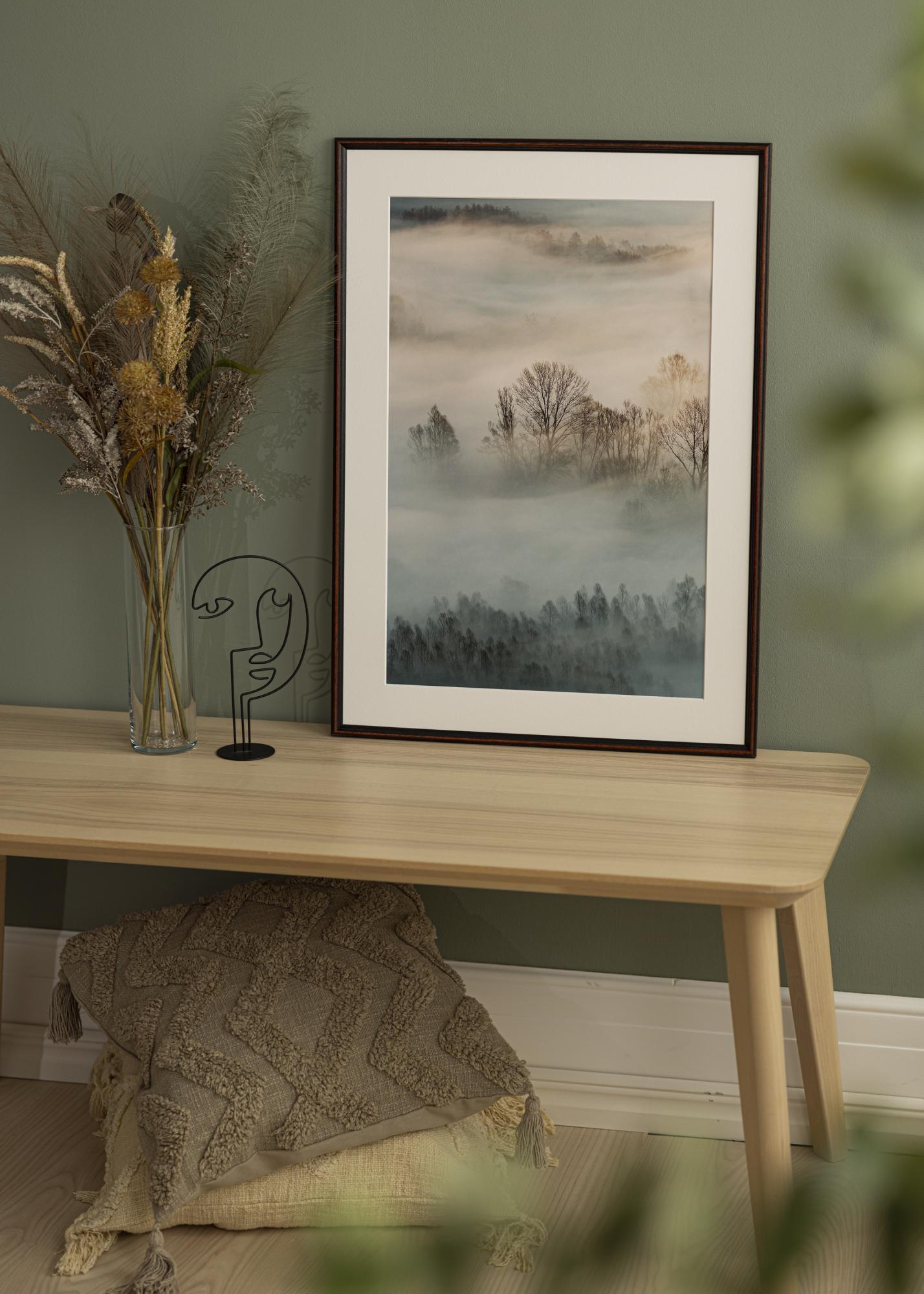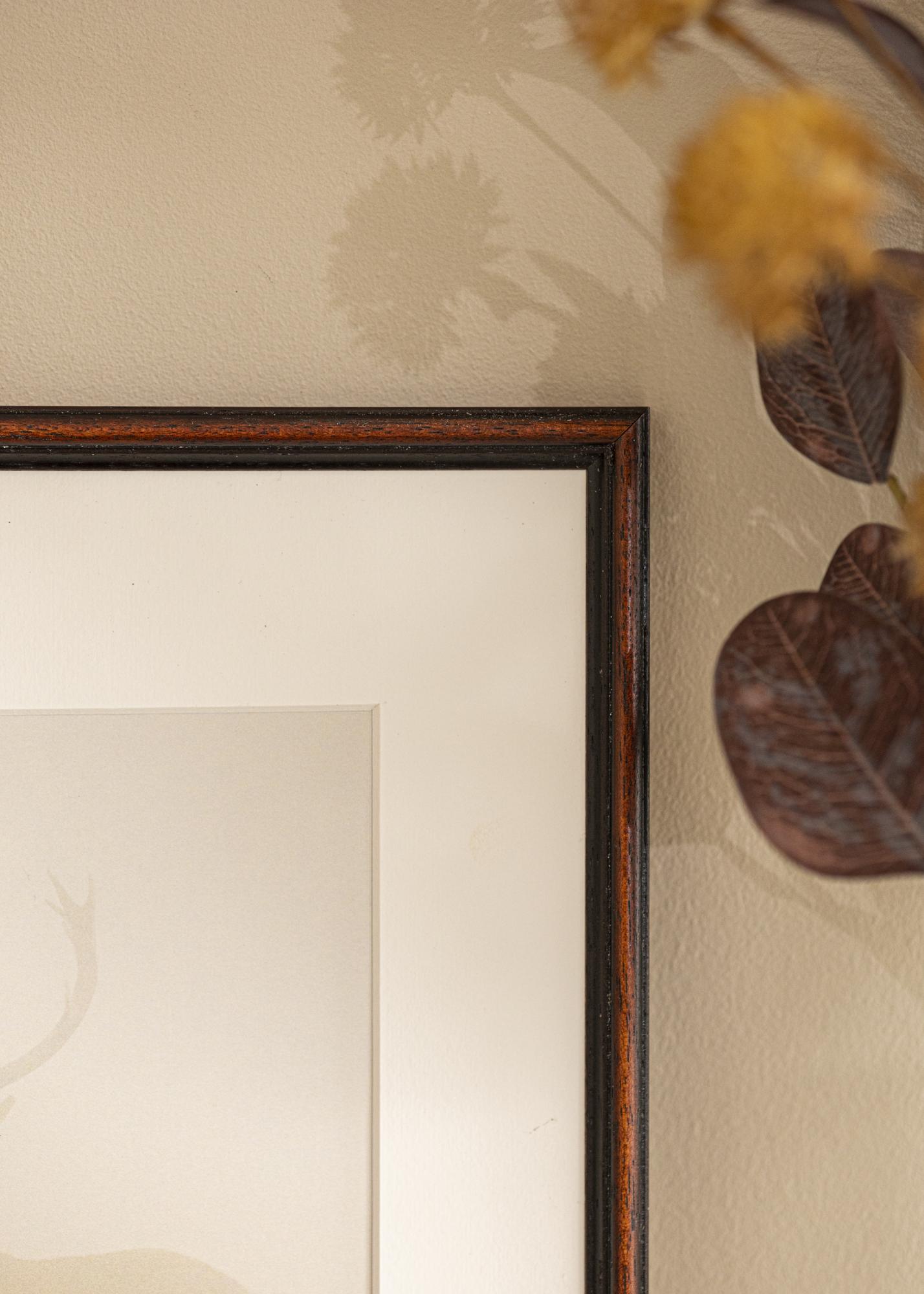 Laget i Sverige av bøk, kombinerer denne rammen holdbarhet med stil. Den har en matt overflate som komplementerer det varme valnøttmønsteret og gir et sofistikert utseende. Rammebredden er 15 mm og dybden er 14 mm, noe som gir en diskret men allikevel tilstedeværende følelse til ditt innrammede bilde.