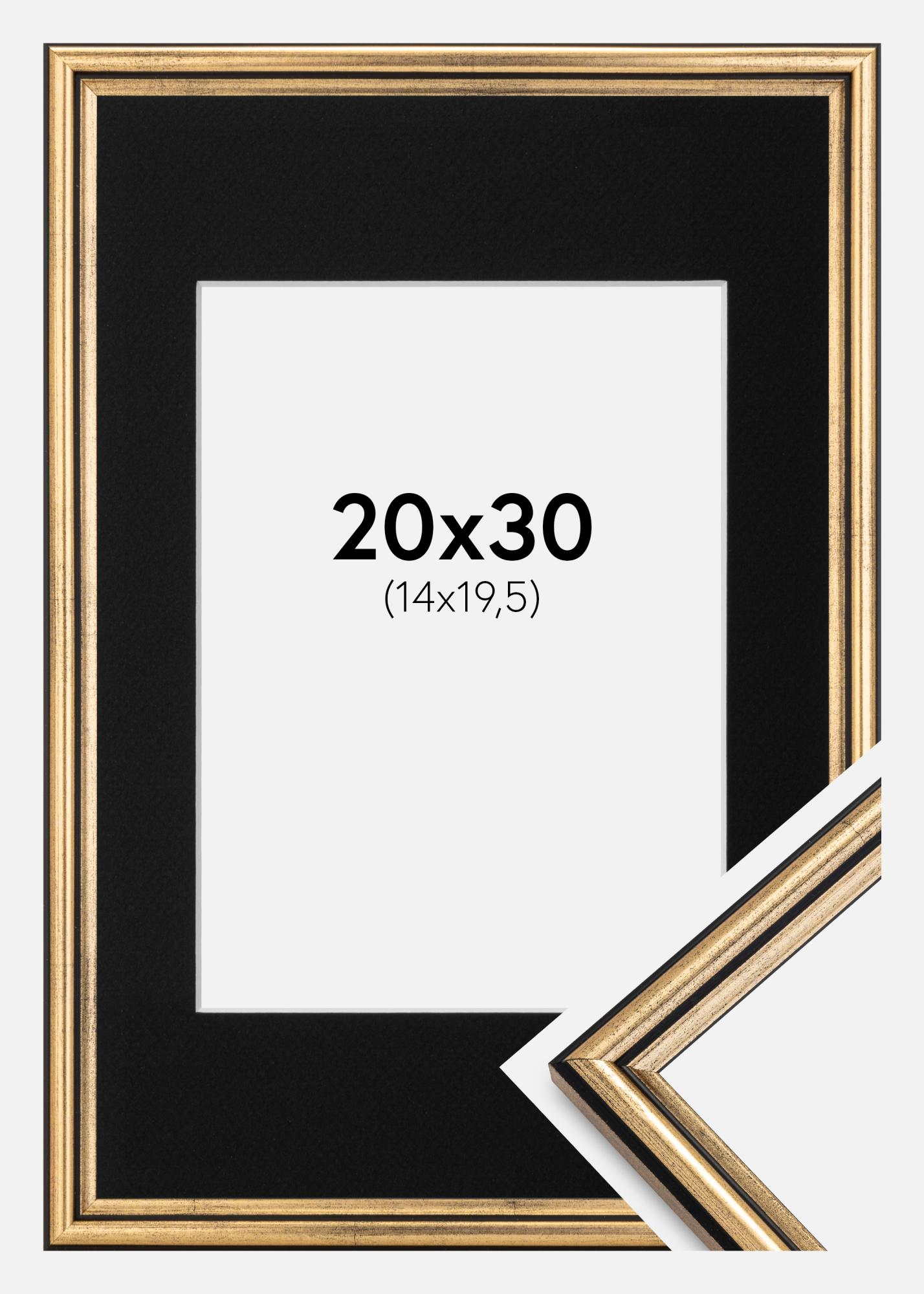 Ramme Horndal Gull 20x30 cm - Passepartout Svart 15x21 cm (A5)