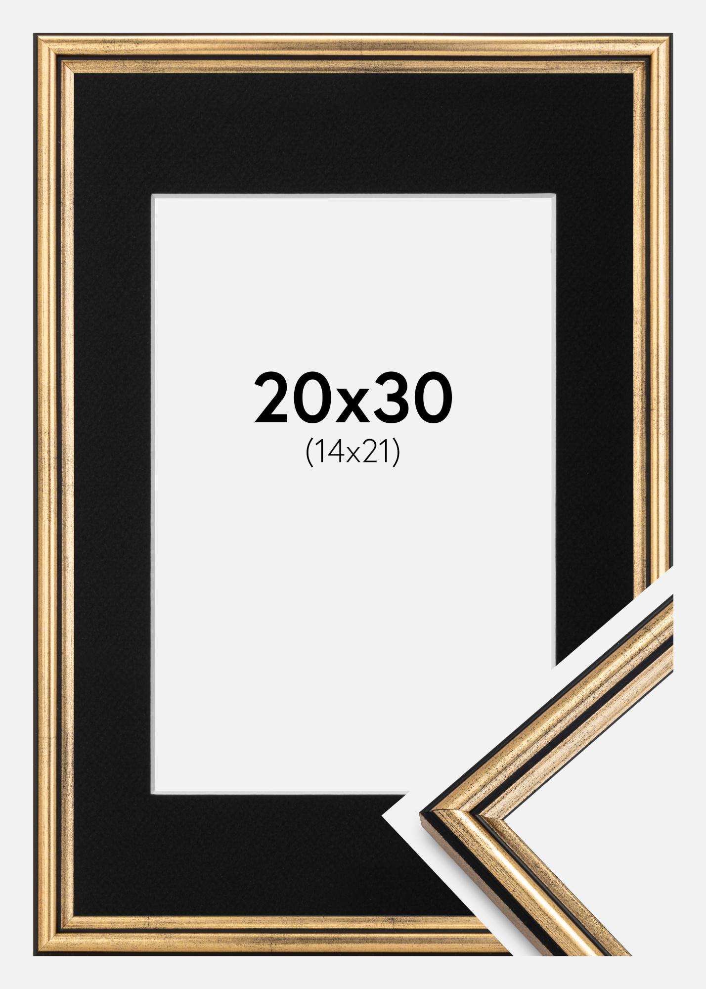 Ramme Horndal Gull 20x30 cm - Passepartout Svart 15x22 cm