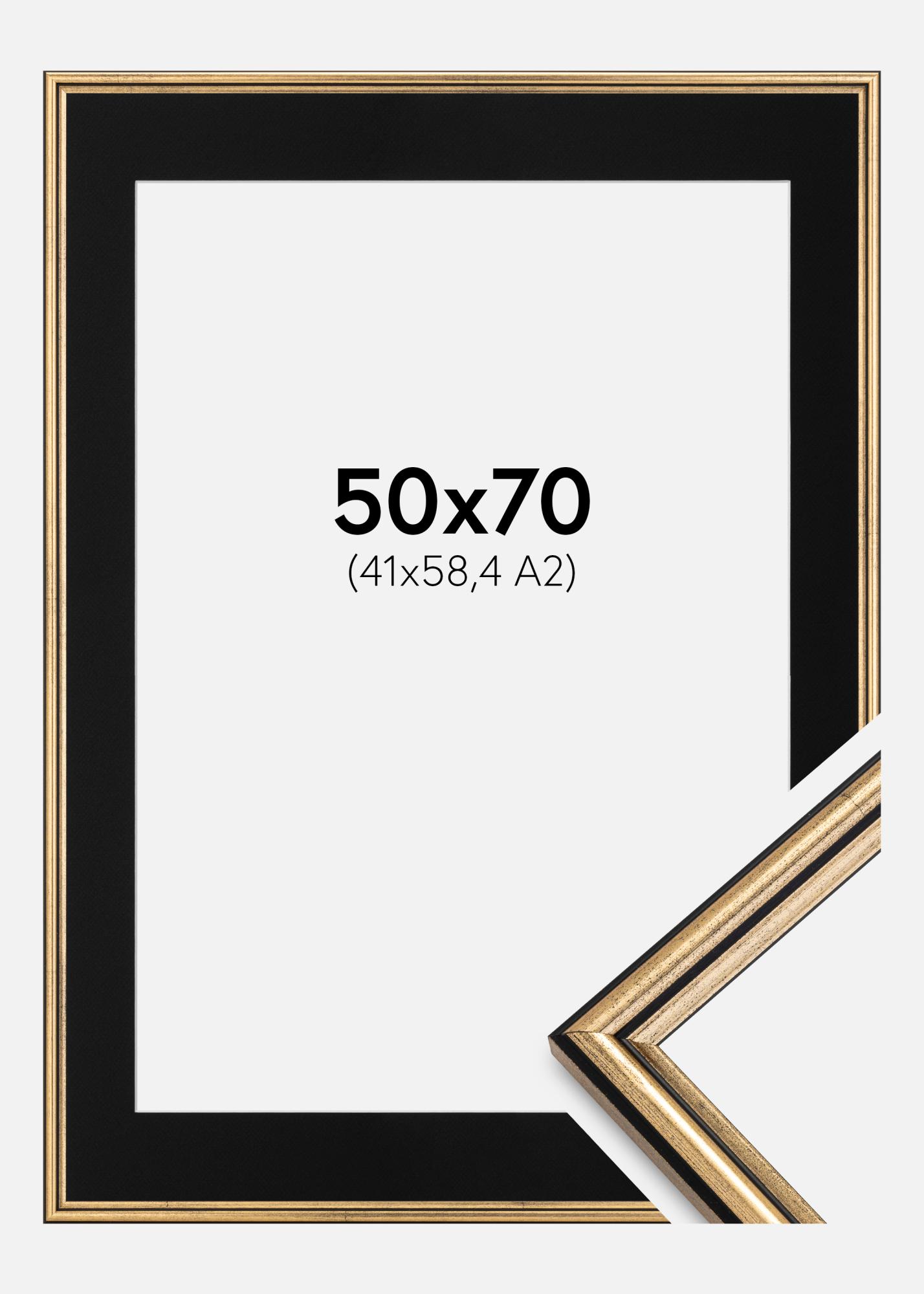 Ramme Horndal Gull 50x70 cm - Passepartout Svart 42x59,4 cm (A2)