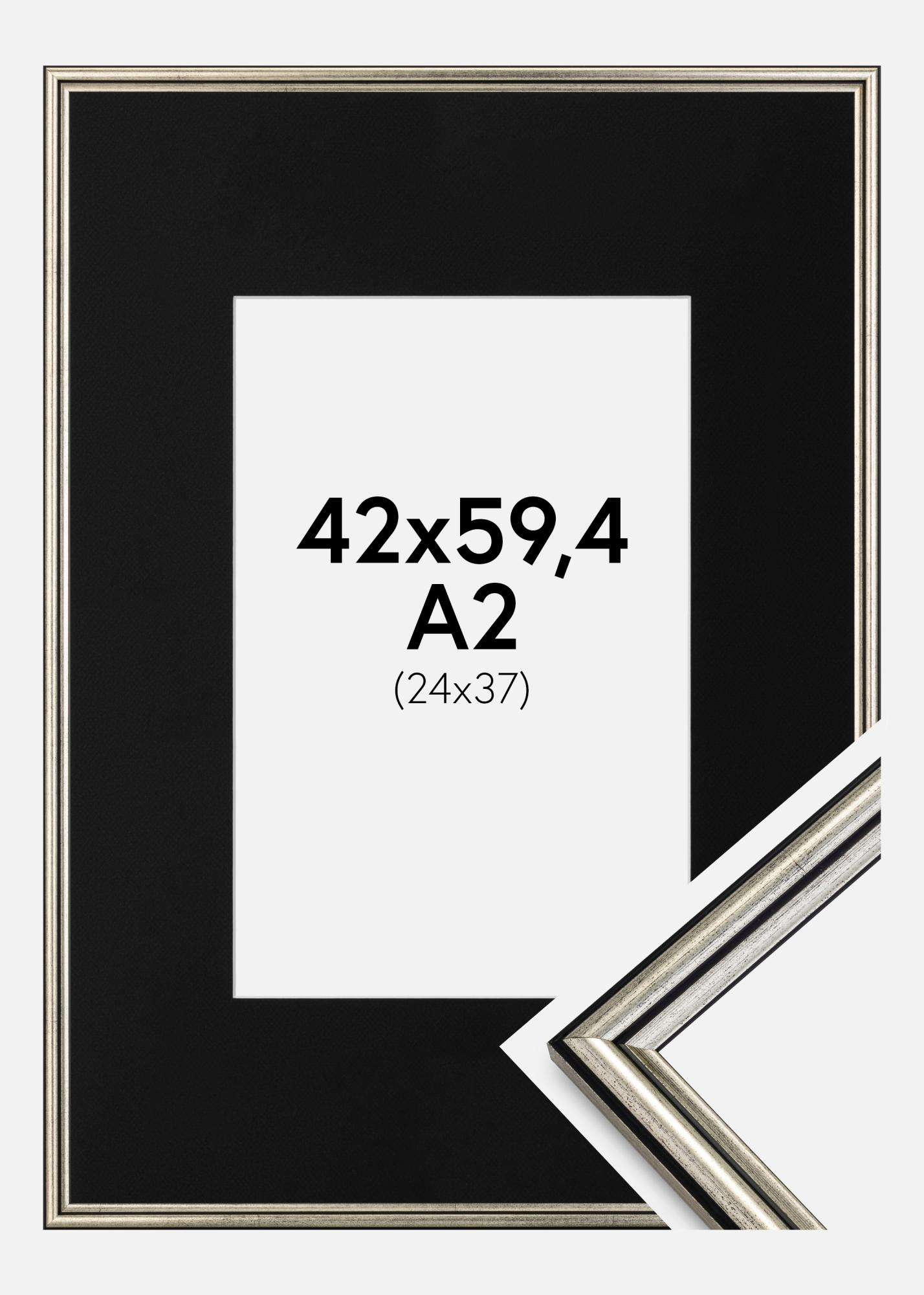 Ramme Horndal Sølv 42x59,4 cm (A2) - Passepartout Svart 25x38 cm