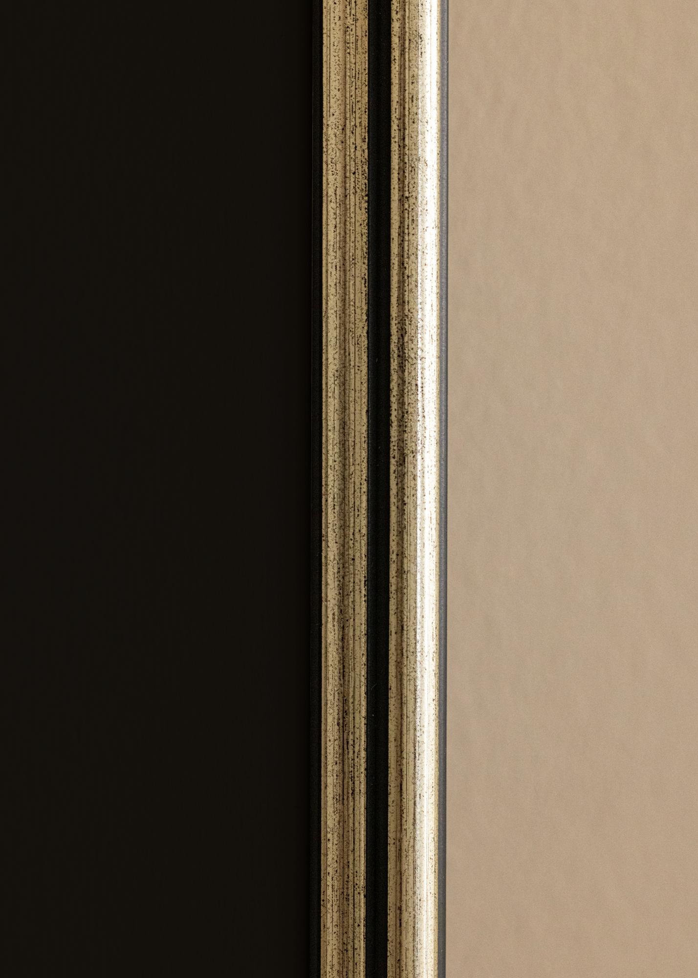 Pakke med bilderamme og passende svart passepartout. På produktbildet ser du rammens mål (skrevet med fet skrift) og passepartoutens innvendige mål (skrevet i parentes). Merk at passepartoutens innvendige mål alltid må være 1 cm mindre enn ønsket bildestørrelse.