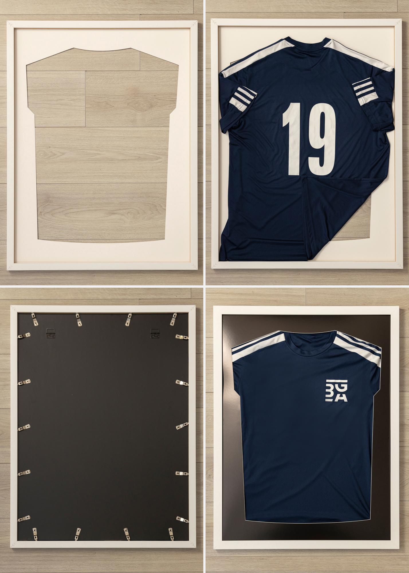 Enten det er en T-skjorte fra ditt yndlingsband, ditt brudeslør, eller "ramme til fotballdrakt" og "ramme til fodboldtrøje", kan våre rammer tilpasse seg enhver form og størrelse, og gjør ethvert plagg eller tekstil til et sentralt kunstverk i hjemmet ditt.