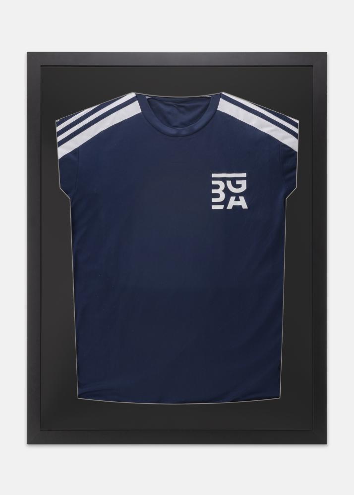 Vår spesielt designede "ramme til fotballdrakt" er ikke bare funksjonell men også estetisk tiltalende. Med en svart ramme og svart passepartout blir fargene på din innrammede fotballtrøye virkelig fremhevet, og kontrasten skaper en dyp og tiltalende visuell effekt. Rammen er utstyrt med høykvalitets akrylglass som er både lett og robust, beskytter din verdifulle trøye mot støv, UV-stråler og slitasje uten å kompromisse med synligheten.