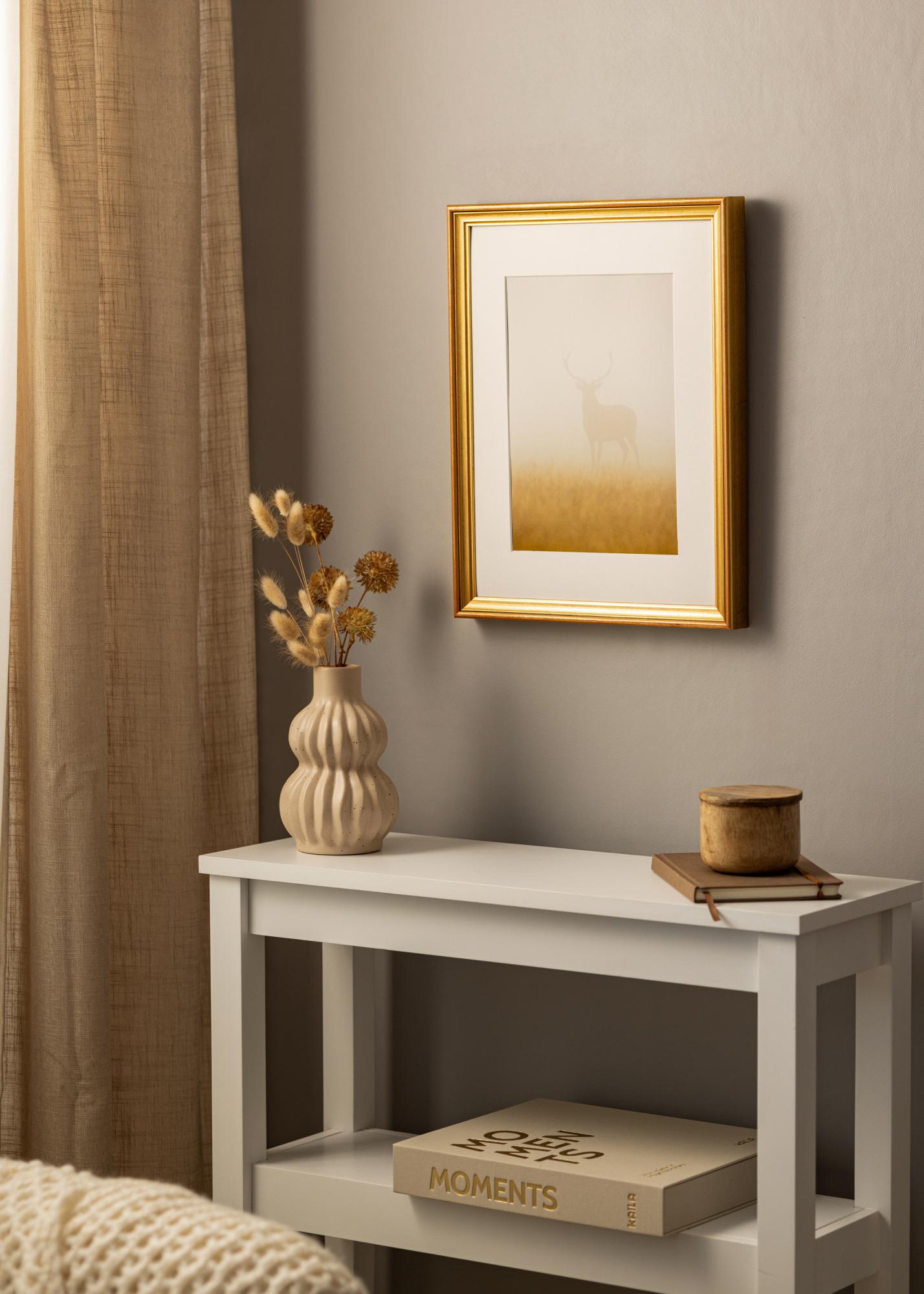Samlet sett er Ramme Loki Gull et utmerket valg for deg som søker en elegant og tidløs innramming for dine bilder. Dens klassiske design og høykvalitetsmaterialer gjør den til en investering som vil vare i mange år fremover. La denne vakre gullrammen bli en del av ditt hjem og gi dine kunstverk den innrammingen de fortjener.