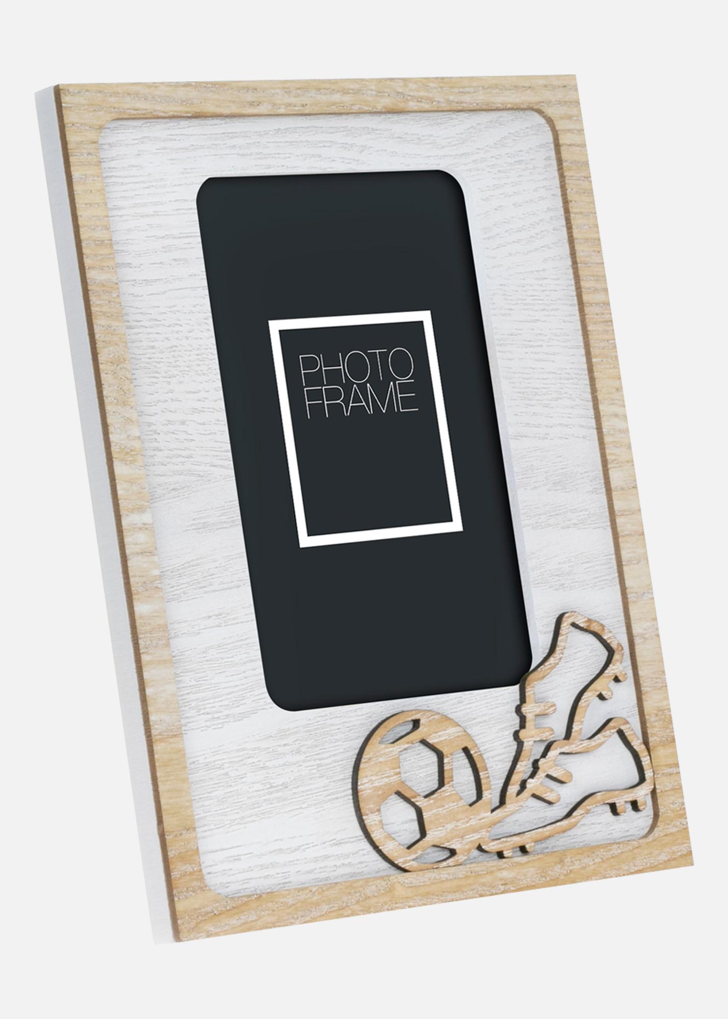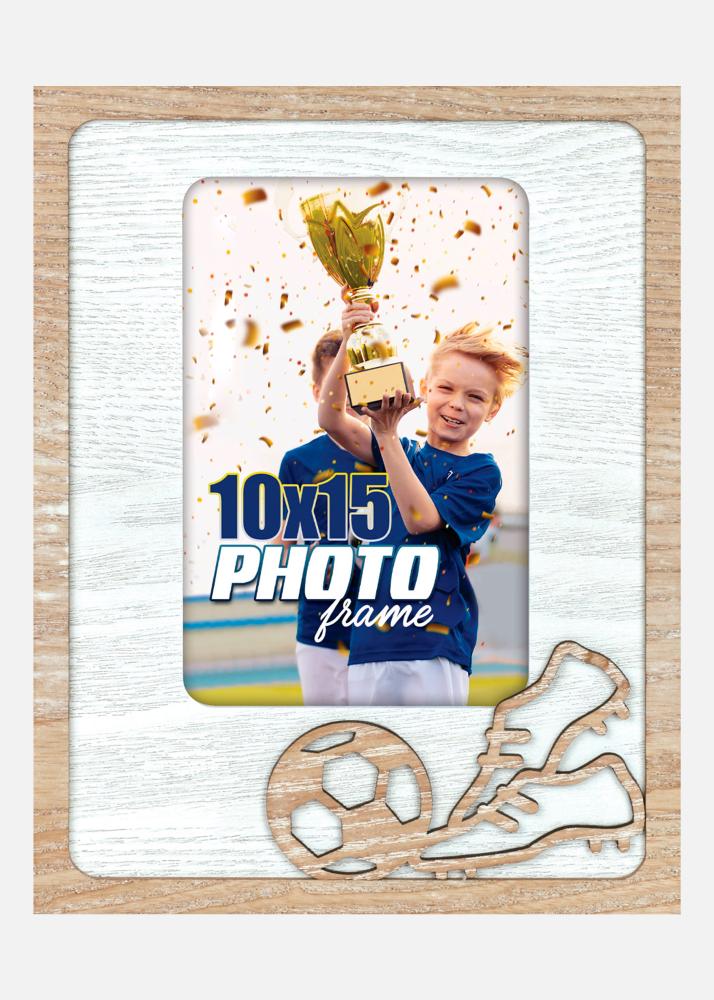 Er du en fotballentusiast eller leter du etter den perfekte gaven til en sportselsker? Denne unike 10x15 cm fotorammen er designet med lidenskap for spillet og vil bli et verdsatt element i ethvert rom. Med sitt fotballtema, inkludert et par fotballsko og en fotball pent plassert på rammen, fanger denne bilderrammen sportens essens av glede og dynamikk.