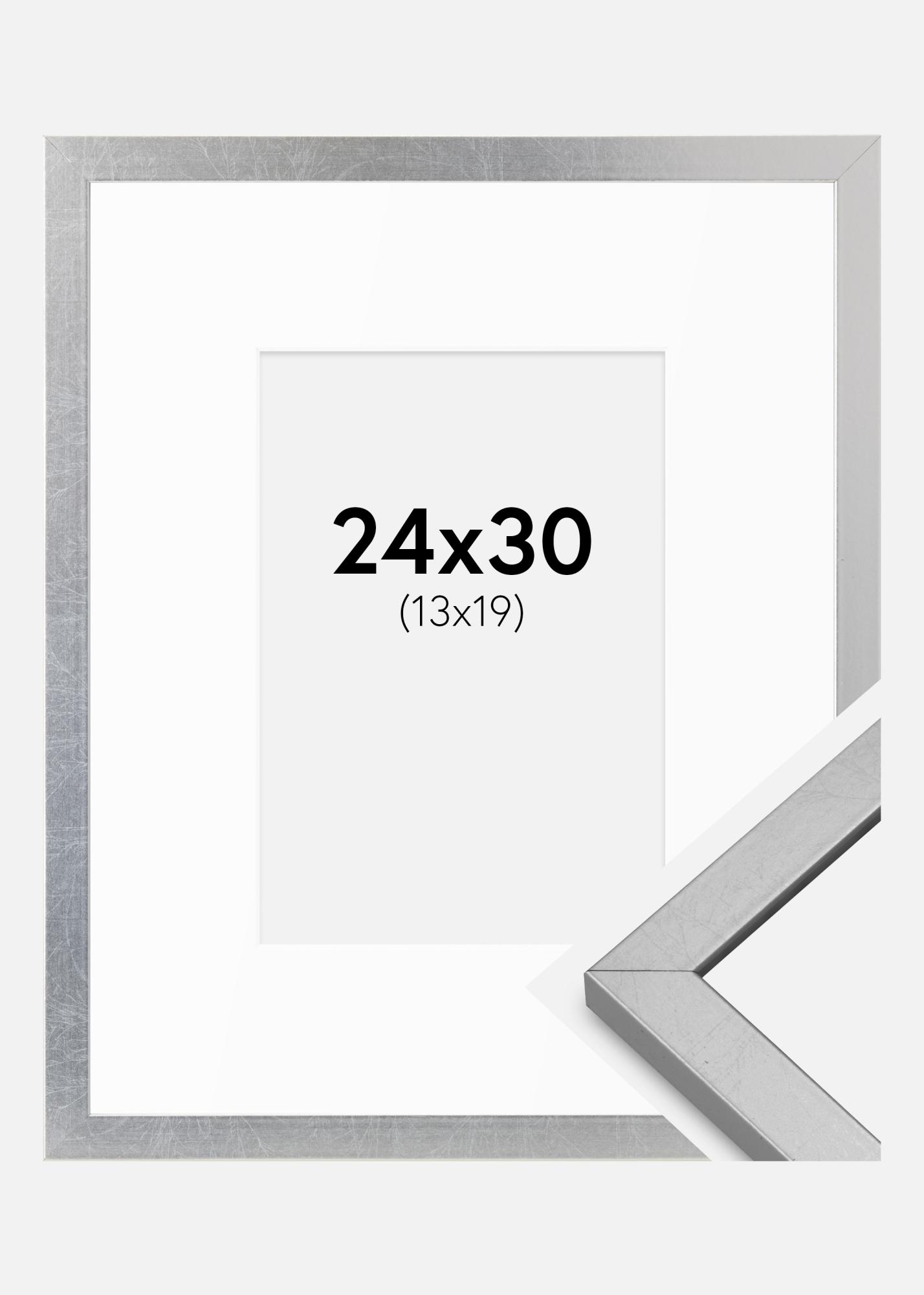 Ramme Minerva Sølv 24x30 cm - Passepartout Hvit 14x20 cm