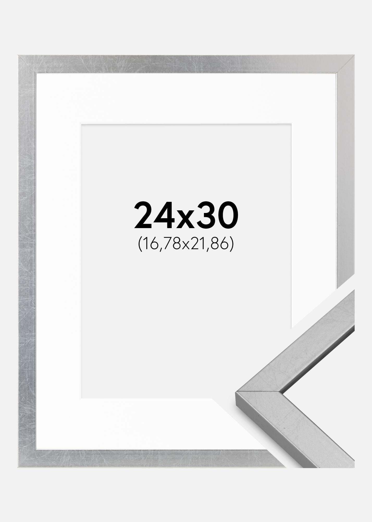 Ramme Minerva Sølv 24x30 cm - Passepartout Hvit 7x9 inches