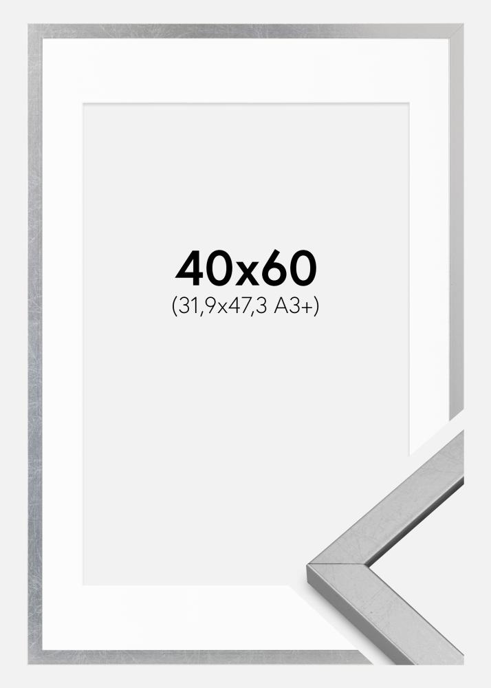 Ramme Minerva Sølv 40x60 cm - Passepartout Hvit 32,9x48,3 cm