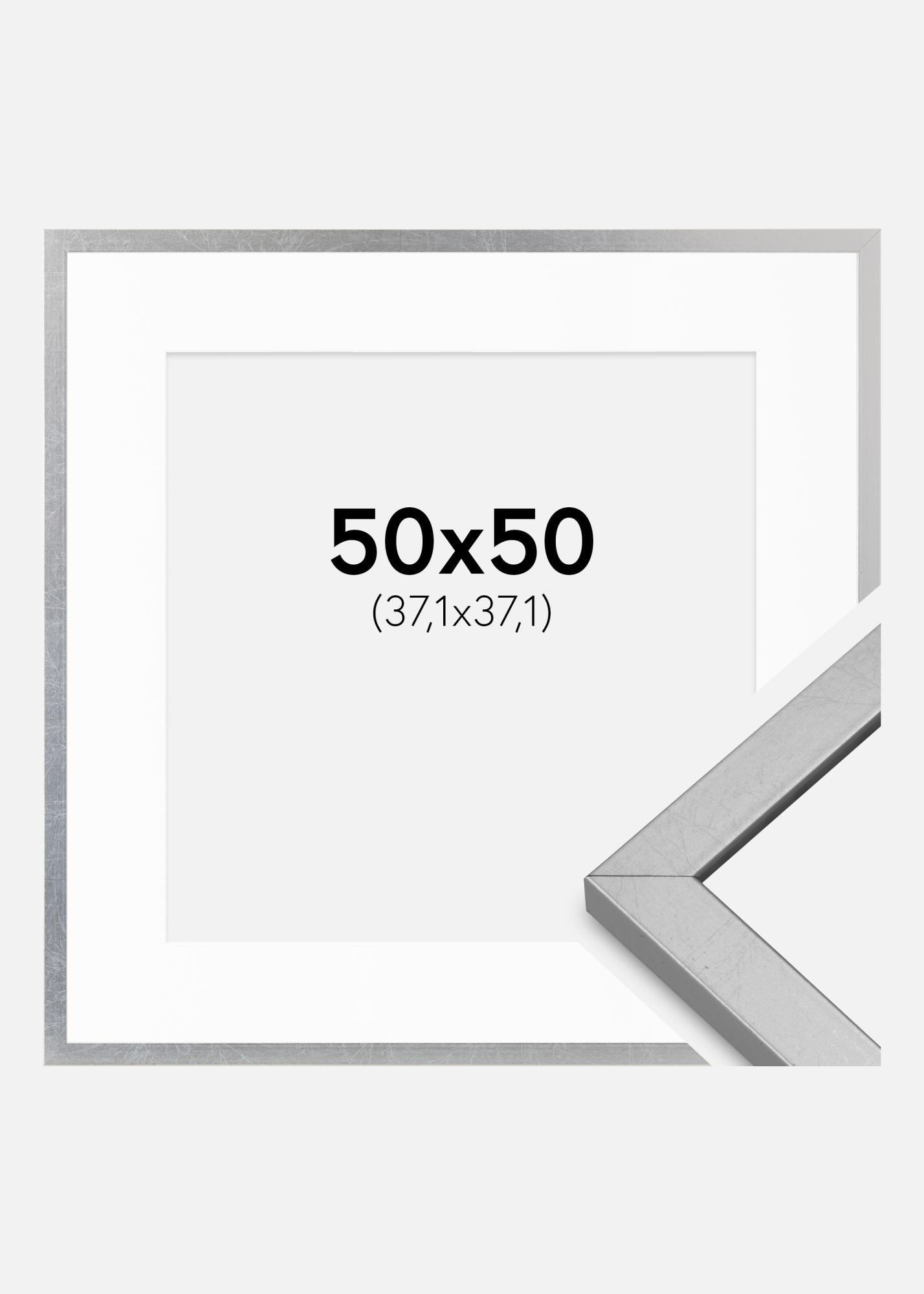 Ramme Minerva Sølv 50x50 cm - Passepartout Hvit 15x15 inches