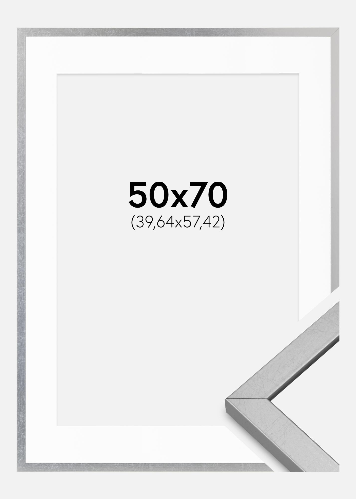 Ramme Minerva Sølv 50x70 cm - Passepartout Hvit 16x23 inches