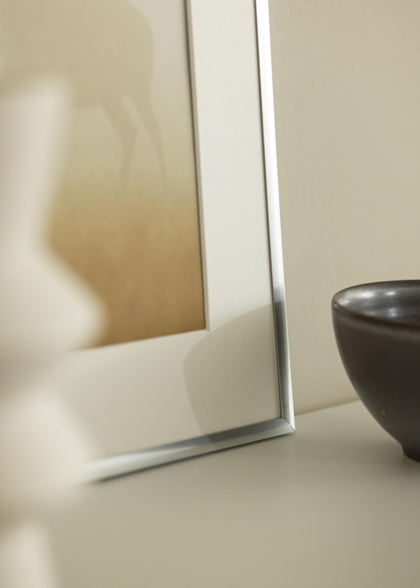 Forvandle bildene dine til kunstverk med vår elegante sølvfargede ramme, komplett med en stilren hvit passepartout. Denne rammen er perfekt for å fremheve dine 8x10 cm bilder og gi dem en sofistikert innramming. Med en matt finish og en smal bredde på 9 mm, tilbyr denne rammen en moderne og minimalistisk følelse som passer inn i de fleste interiørstiler.