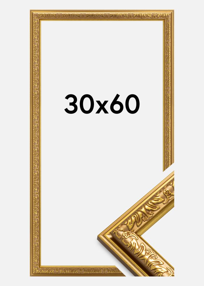 Dette er en elegant gullramme dekorert med dekorative ornamenter i retrostil. Rammen har mye karakter og blir en fin interiørdetalj på veggen din, samtidig som den ikke tar fokus fra motivet ditt. På baksiden av rammen finnes det en veggfeste som lar deg montere rammen i både stående og liggende posisjon.