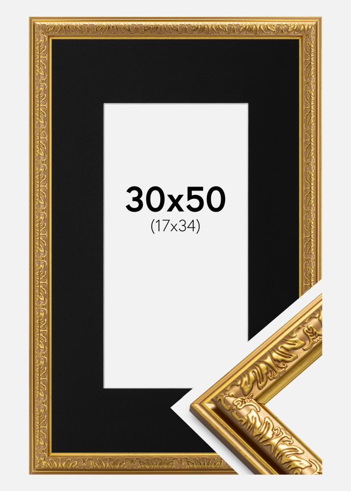 Ramme Nostalgia Gull 30x50 cm - Passepartout Svart 18x35 cm