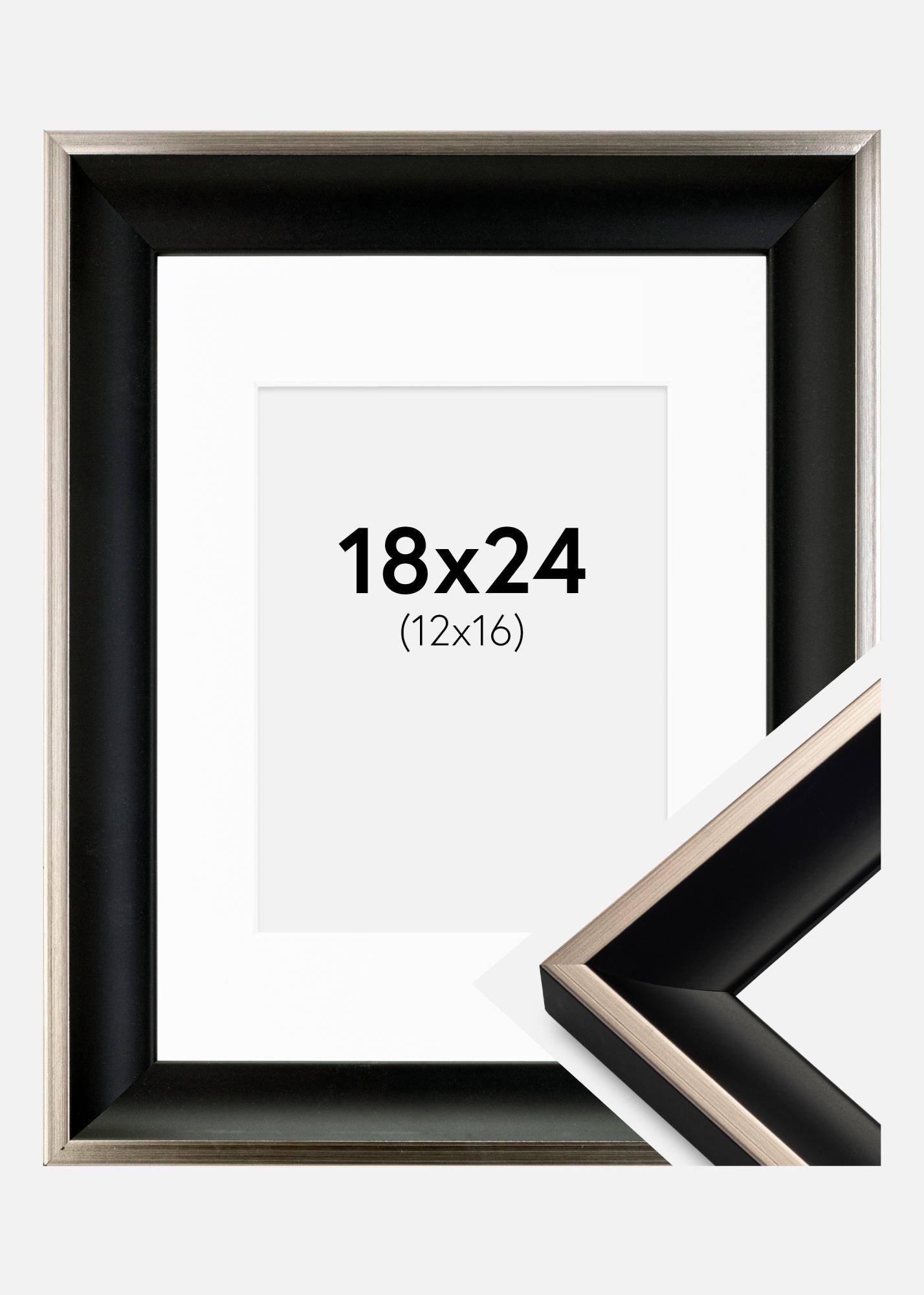 Ramme Öjaren Svart-Sølv 18x24 cm - Passepartout Hvit 13x17 cm