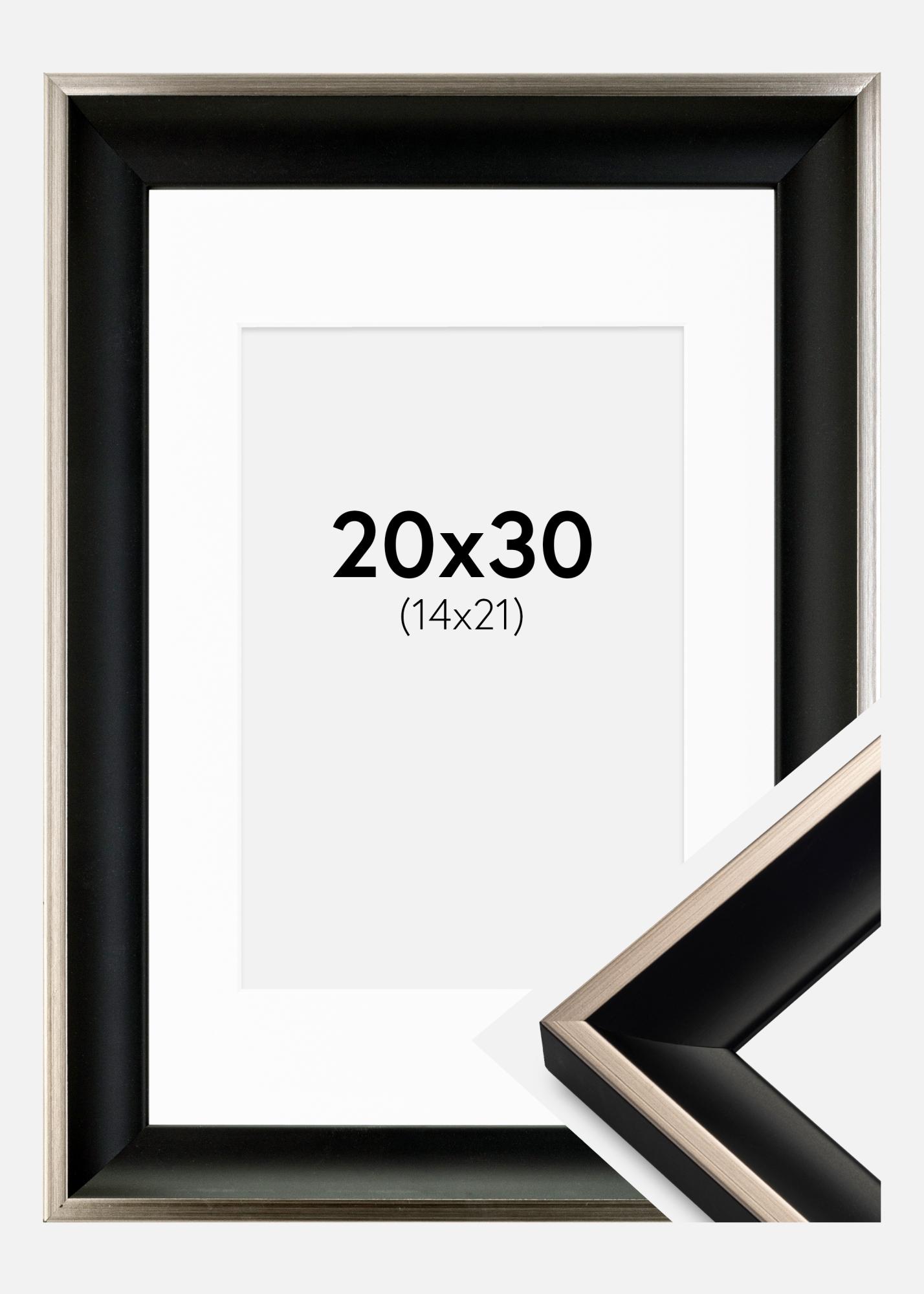 Ramme Öjaren Svart-Sølv 20x30 cm - Passepartout Hvit 15x22 cm