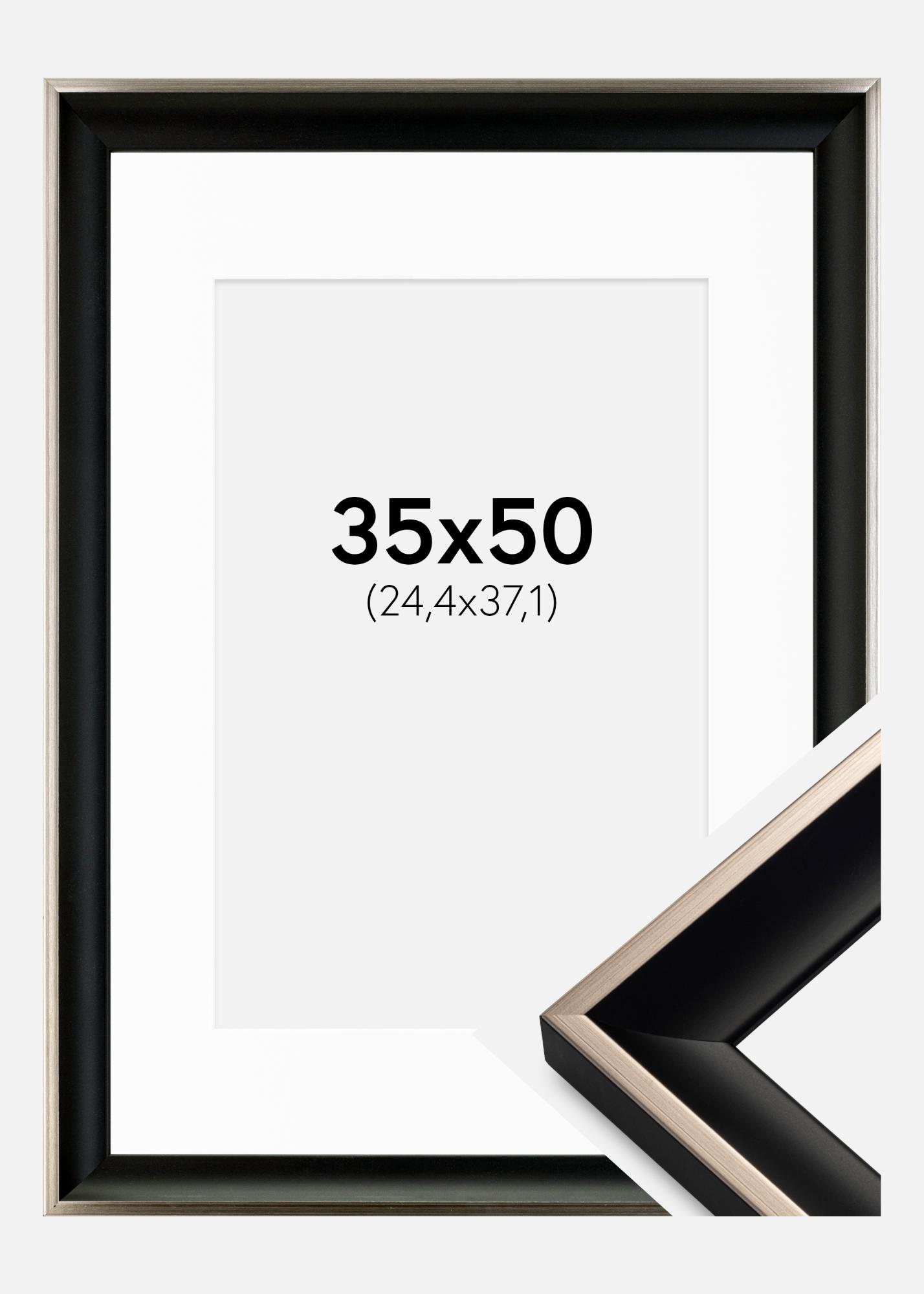 Ramme Öjaren Svart-Sølv 35x50 cm - Passepartout Hvit 10x15 inches