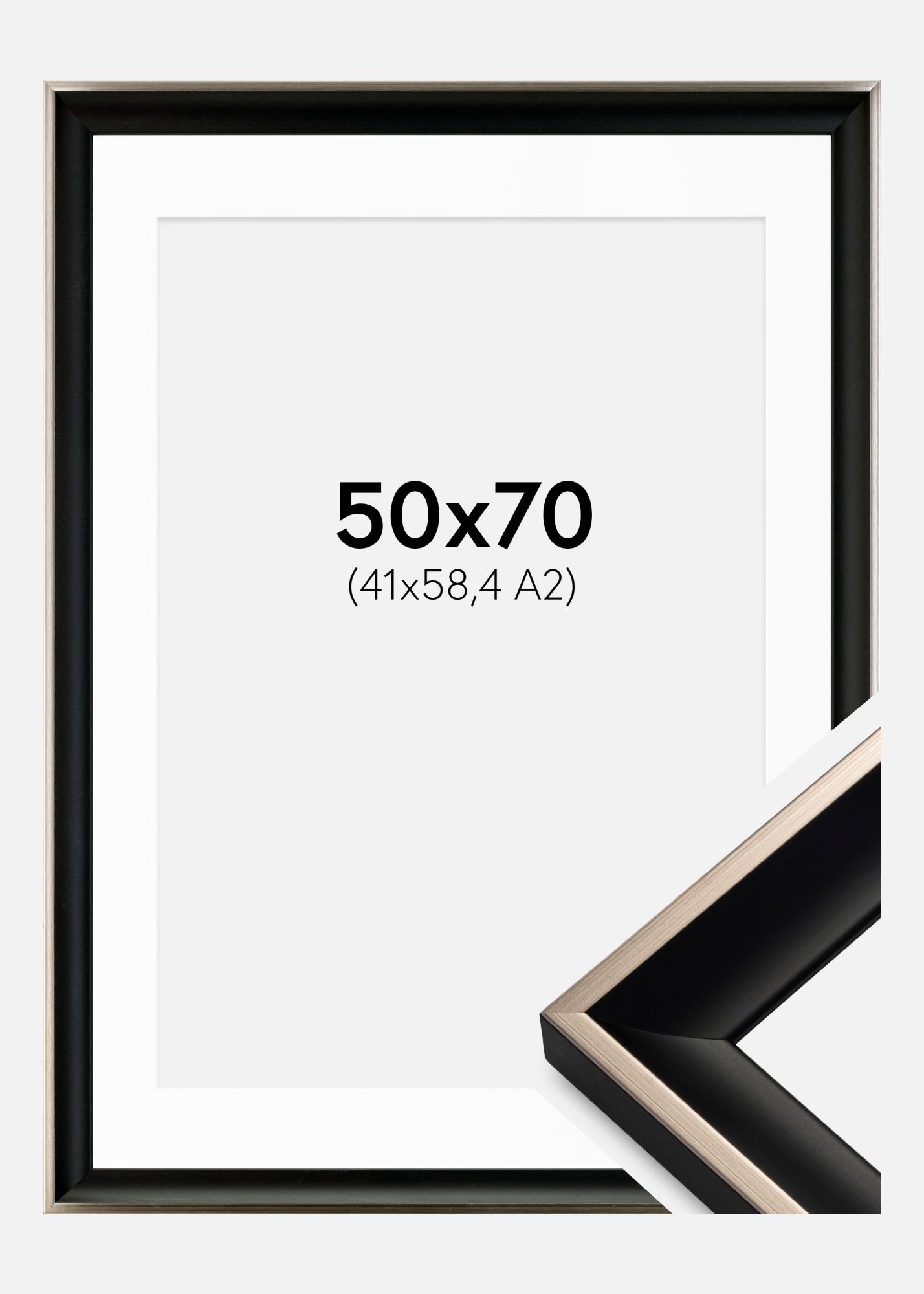 Ramme Öjaren Svart-Sølv 50x70 cm - Passepartout Hvit 42x59,4 cm (A2)