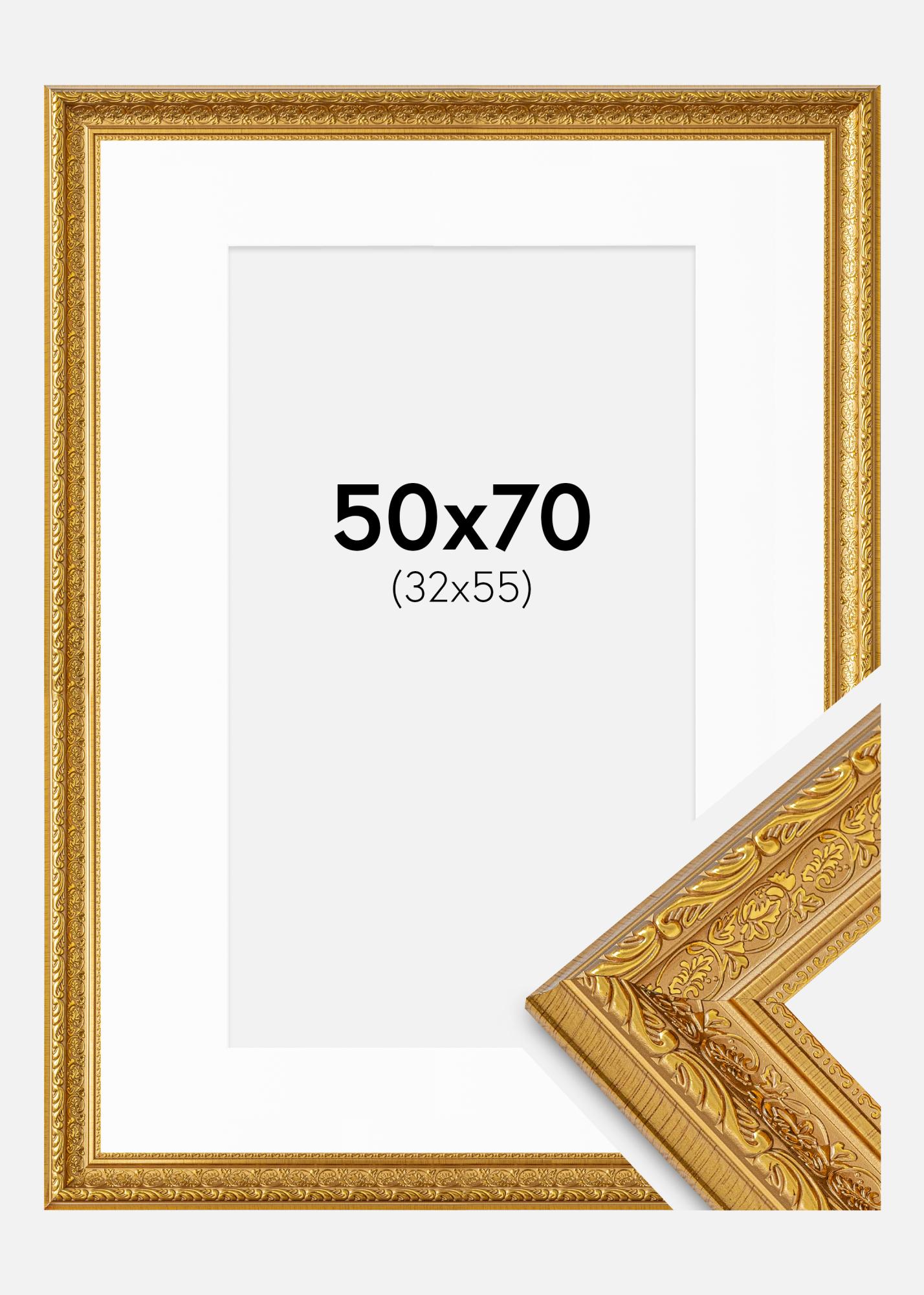 Ramme Ornate Gull 50x70 cm - Passepartout Hvit 33x56 cm