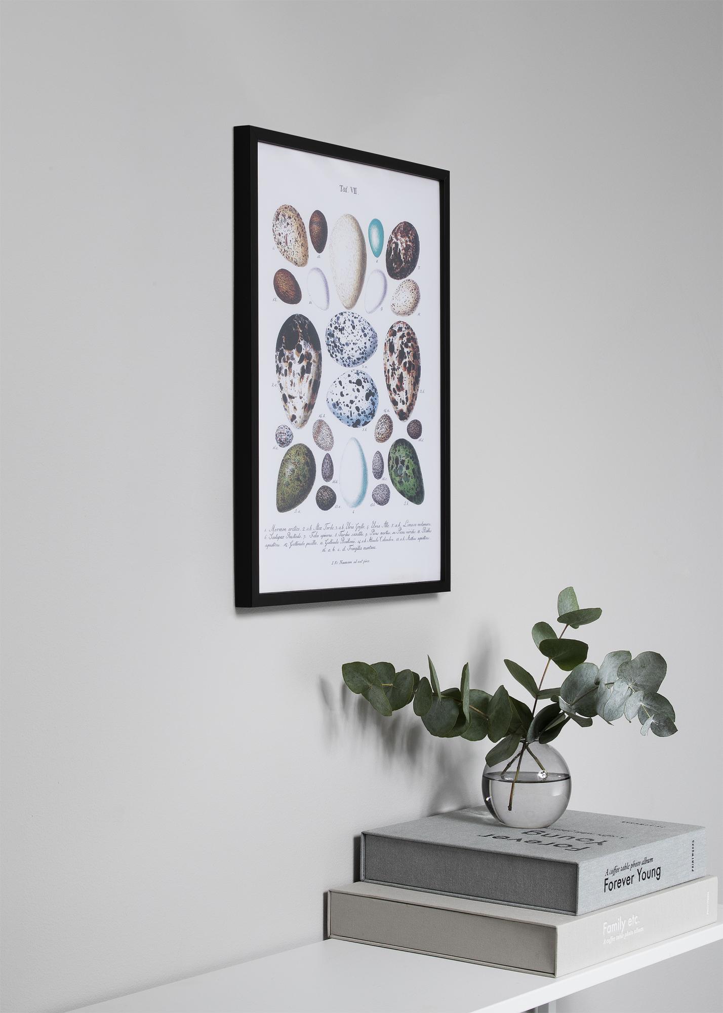 Pakke med bilderamme og passende svart passepartout. På produktbildet ser du rammens mål (skrevet med fet skrift) og passepartoutens innvendige mål (skrevet i parentes). Merk at passepartoutens innvendige mål alltid må være 1 cm mindre enn ønsket bildestørrelse.
