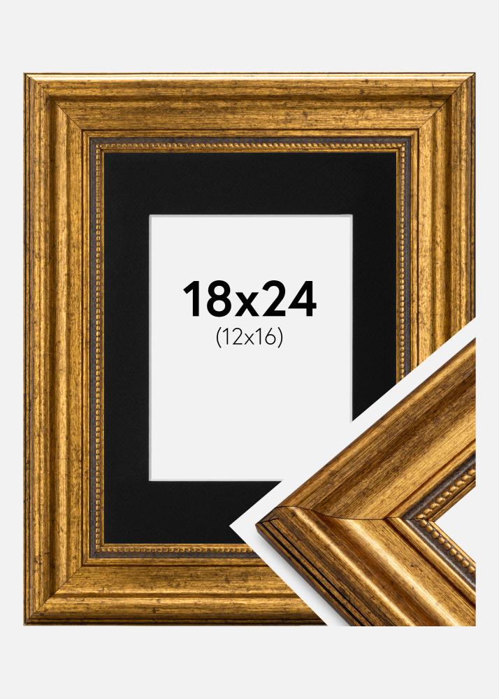 Ramme Rokokko Gull 18x24 cm - Passepartout Svart 13x17 cm