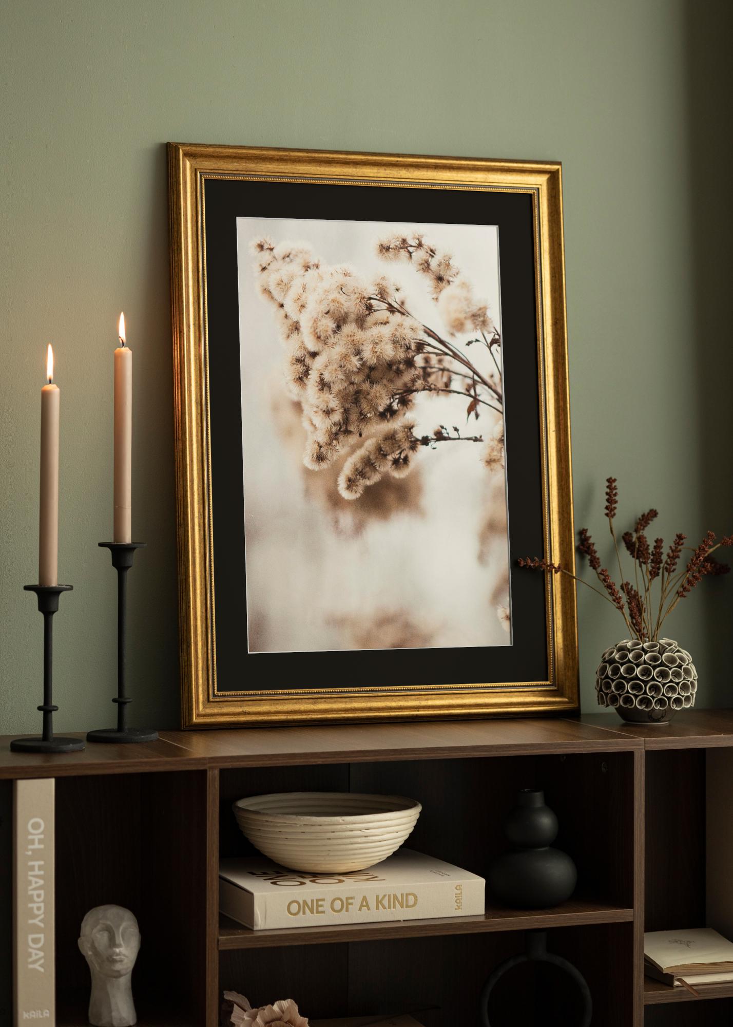 Ramme Rokokko Gull 40x50 cm - Passepartout Svart 29,7x42 cm (A3)