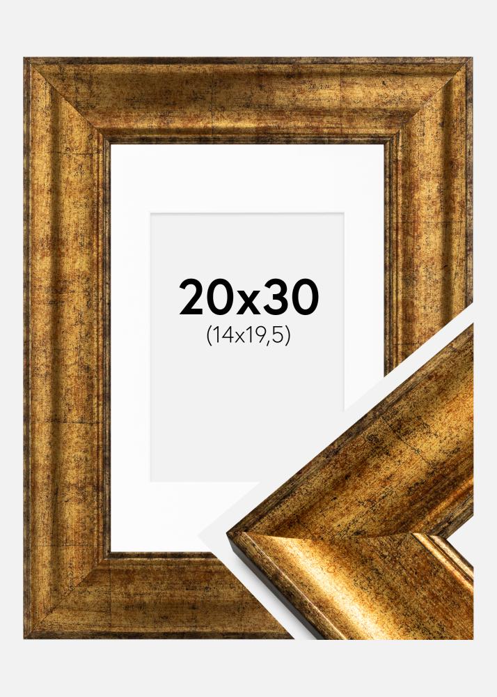 Ramme Saltsjöbaden Gull 20x30 cm - Passepartout Hvit 15x21 cm (A5)