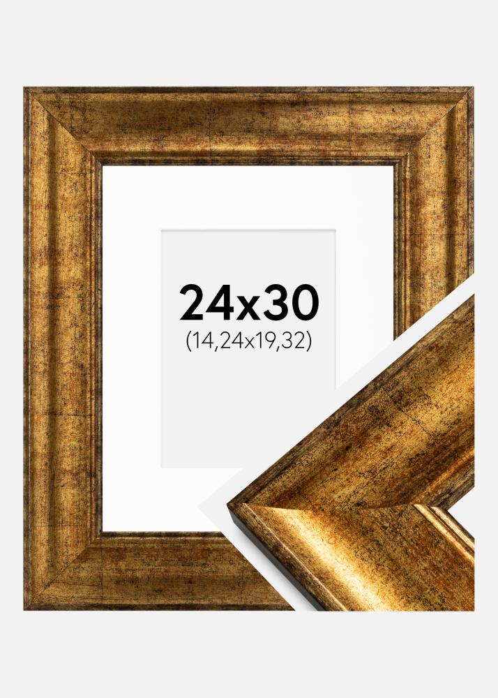 Ramme Saltsjöbaden Gull 24x30 cm - Passepartout Hvit 6x8 inches