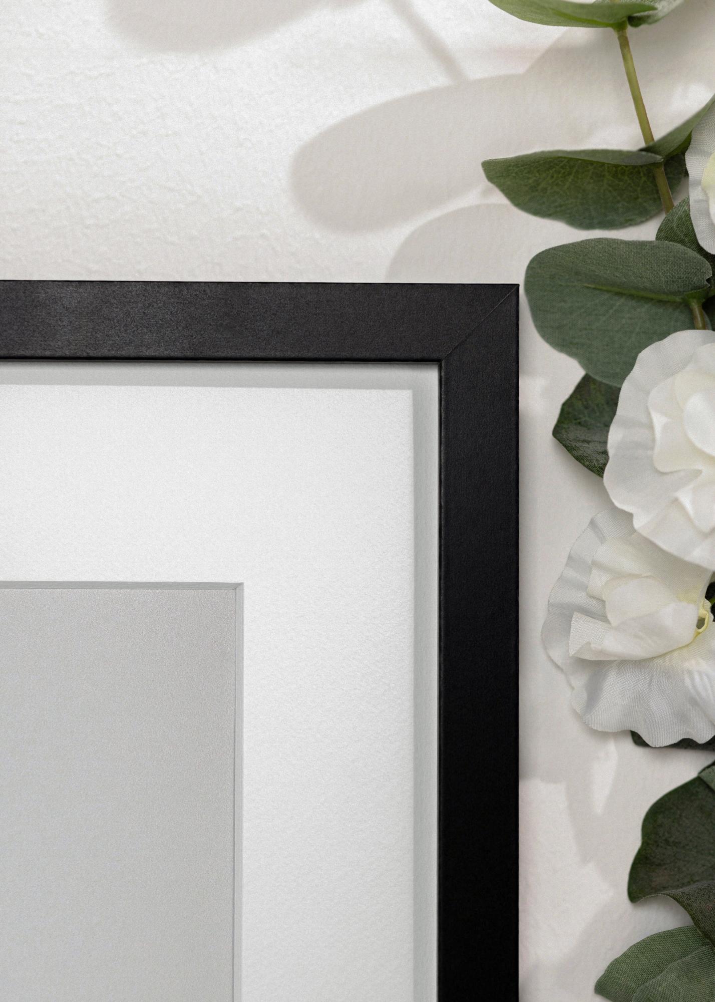 Svarte bilderammer er klassikere av en grunn - de er enkle å matche med ulike interiørstiler, samtidig som de er et fint supplement til motiver i forskjellige farger. Dette er en variant utstyrt med akrylglass, som er et lett og uknuselig glass med krystallklar skarphet. Rammelisten er 18 mm bred og 18 mm dyp og har en stilren firkantet profil.