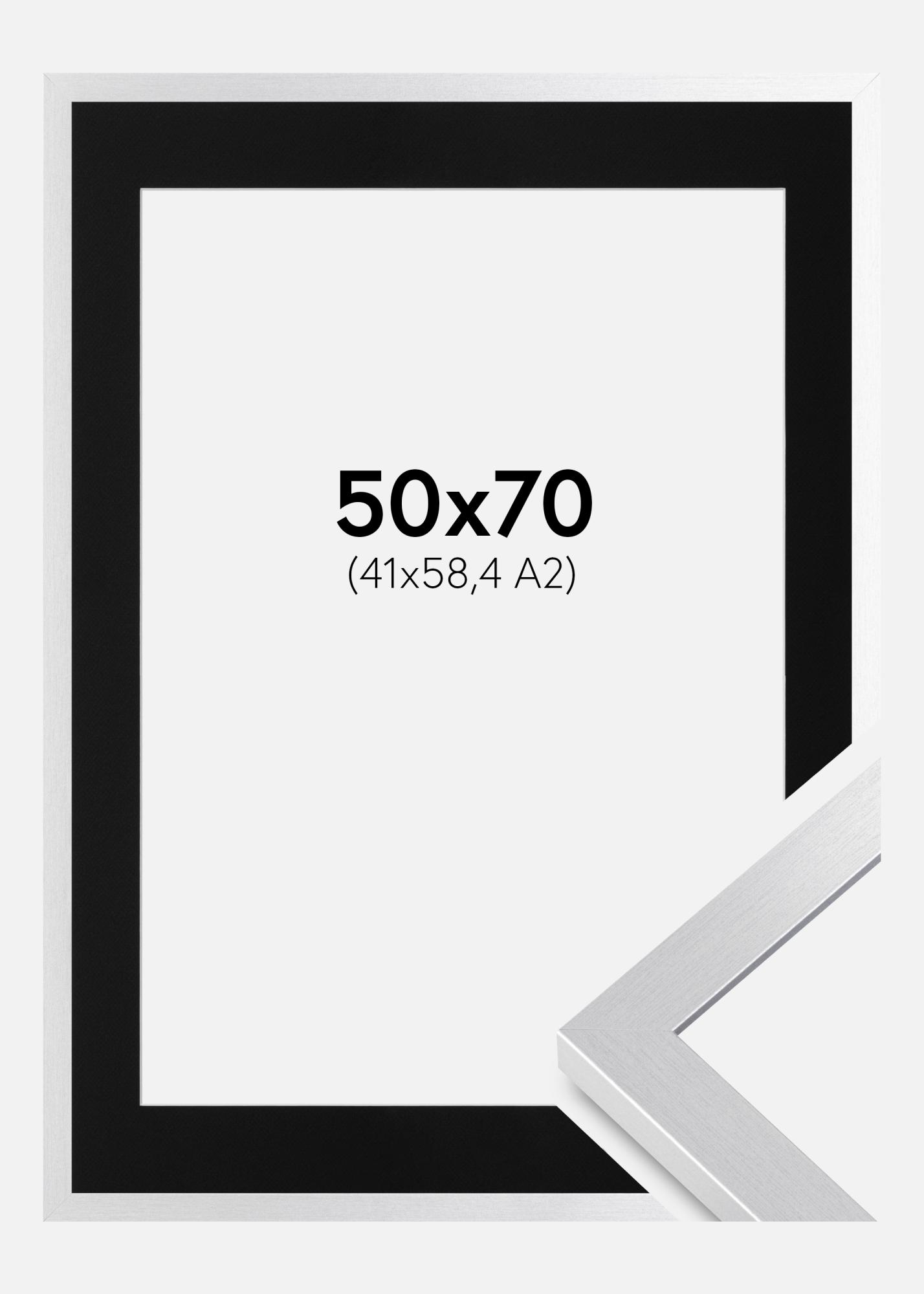 Ramme Selection Sølv 50x70 cm - Passepartout Svart 42x59,4 cm (A2)
