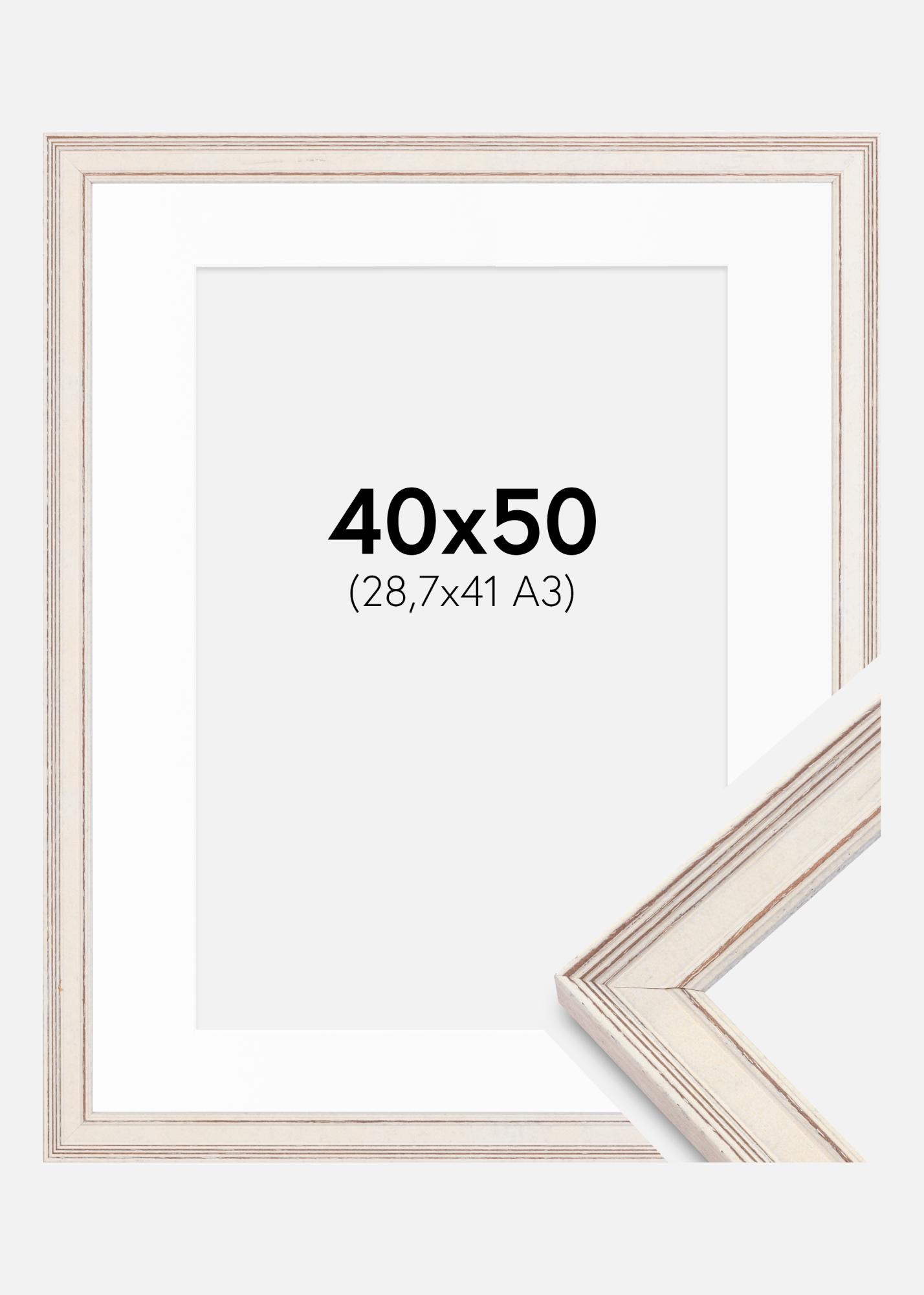 Ramme Shabby Chic Hvit 40x50 cm - Passepartout Hvit 29,7x42 cm (A3)