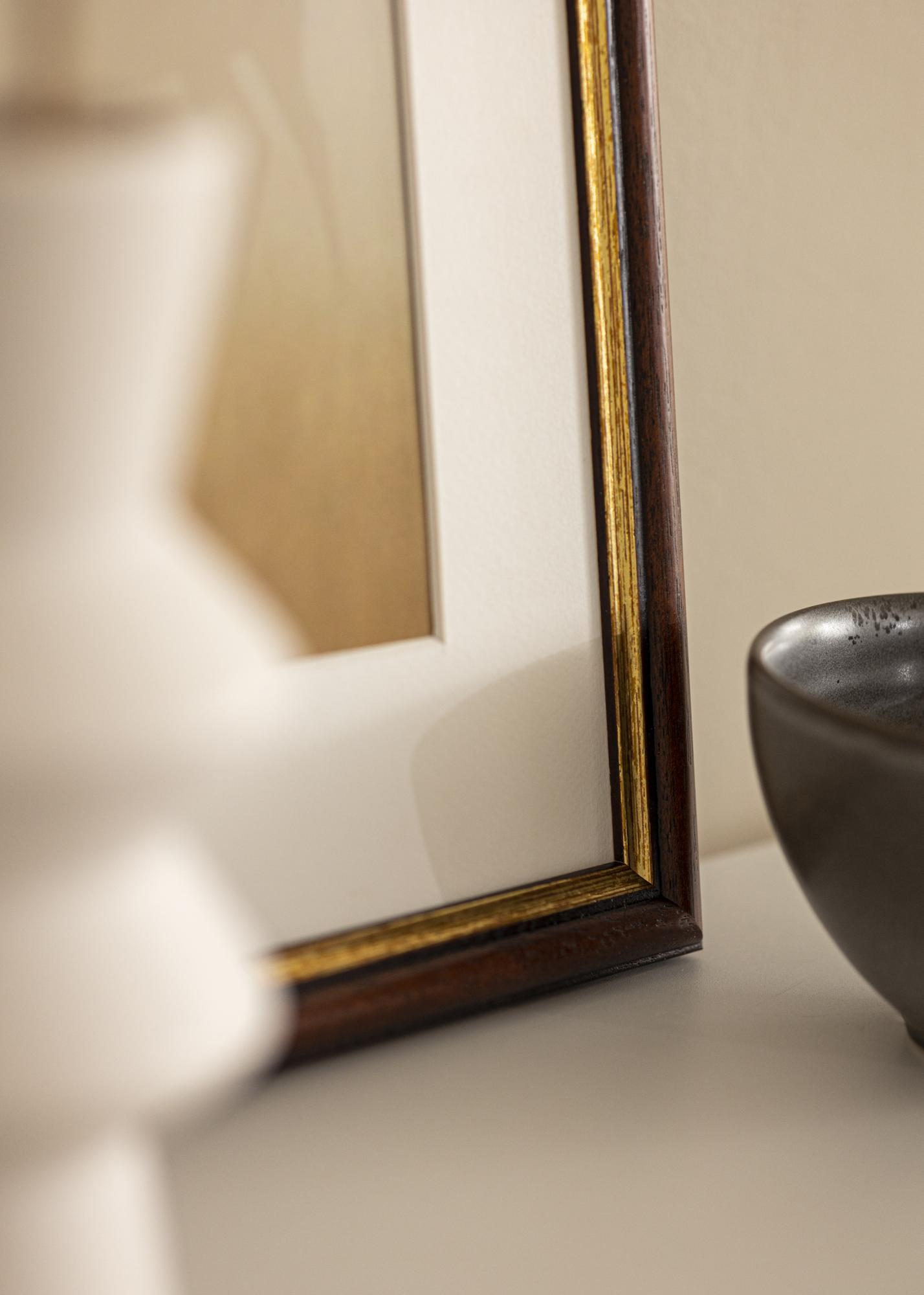 Rammen har en bredde på 24 mm og en dybde på 19 mm, noe som gir en stabil og robust følelse. Den matte overflaten i kombinasjon med den brune fargen gir et tidløst og klassisk utseende som passer inn i de fleste interiørstiler. Rammen er utstyrt med krystallklart og splintsikkert akrylglass, som ikke bare er trygt, men også gir en klar og tydelig visning av bildet ditt. Husk å fjerne beskyttelsesfilmen på begge sider av akrylglasset før du bruker rammen for best resultat.