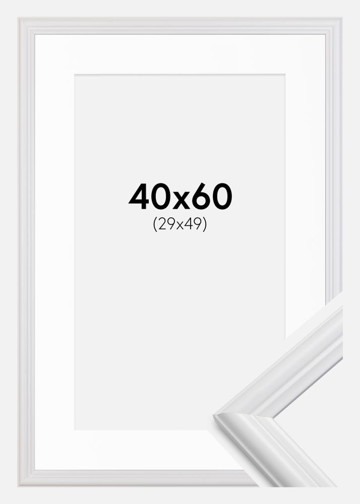 Ramme Siljan Hvit 40x60 cm - Passepartout Hvit 30x50 cm