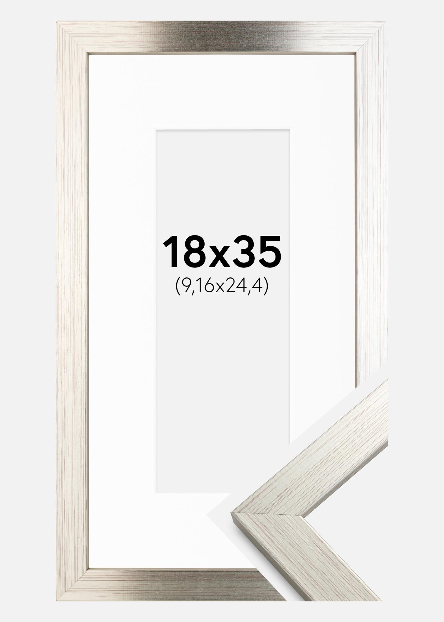Ramme Silver Wood 18x35 cm - Passepartout Hvit 4x10 inches