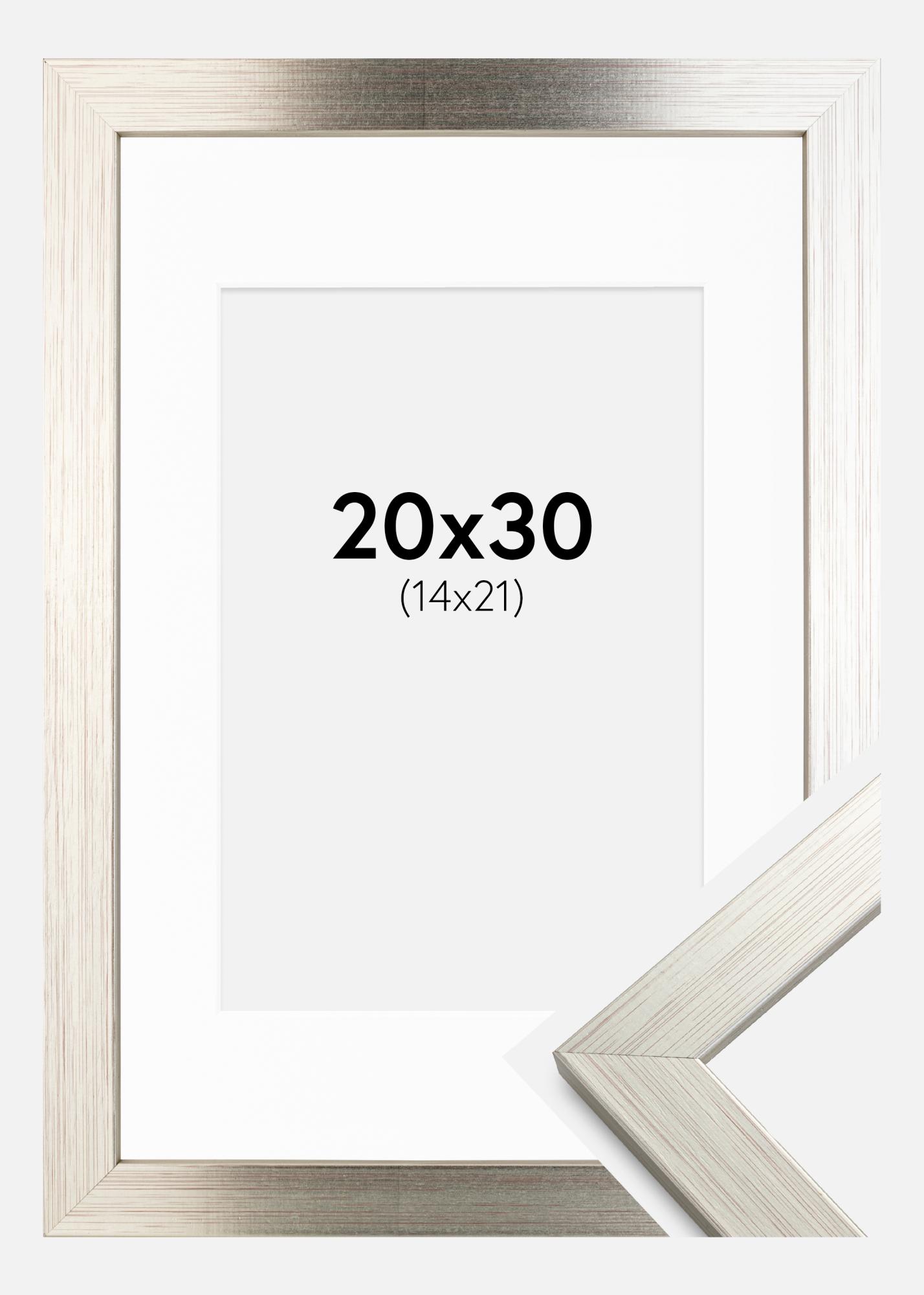 Ramme Silver Wood 20x30 cm - Passepartout Hvit 15x22 cm