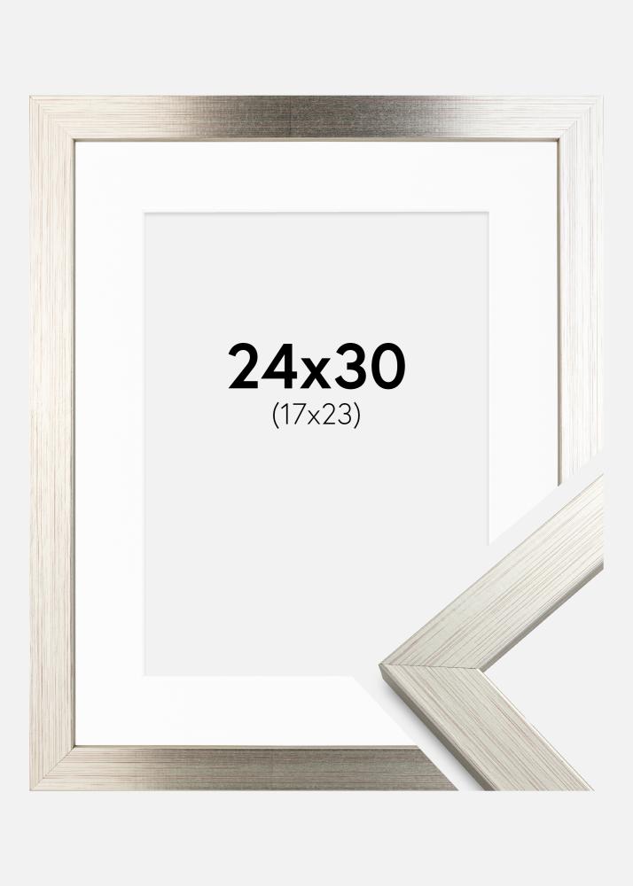 Ramme Silver Wood 24x30 cm - Passepartout Hvit 18x24 cm