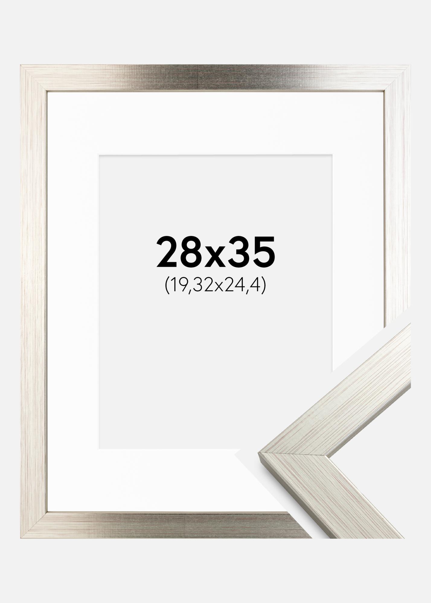 Ramme Silver Wood 28x35 cm - Passepartout Hvit 8x10 inches