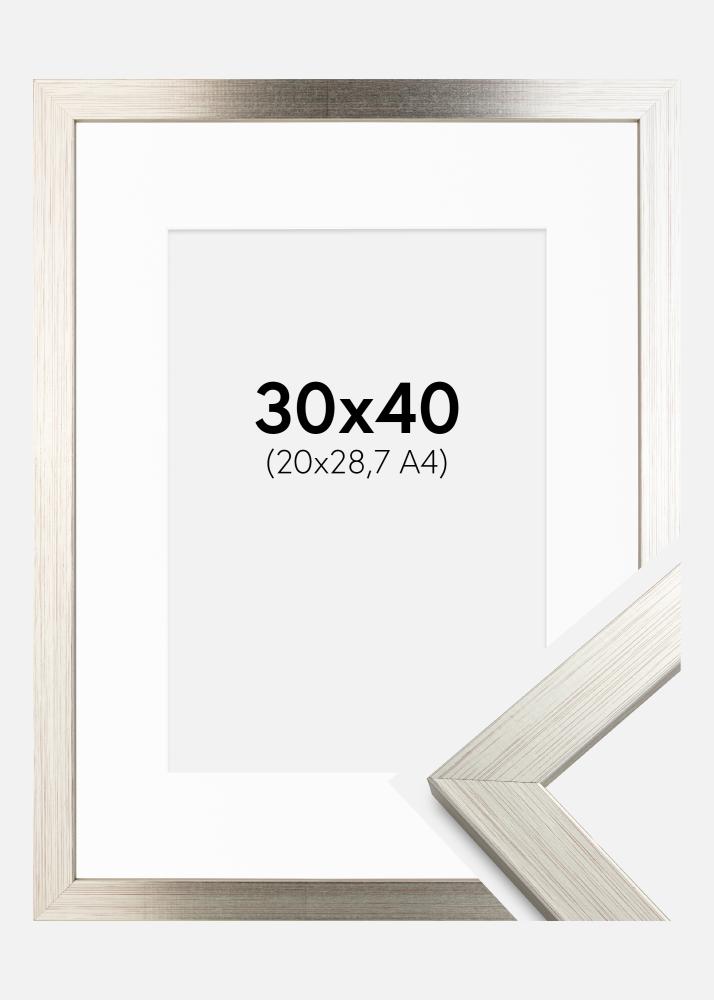 Ramme Silver Wood 30x40 cm - Passepartout Hvit 21x29,7 cm (A4)