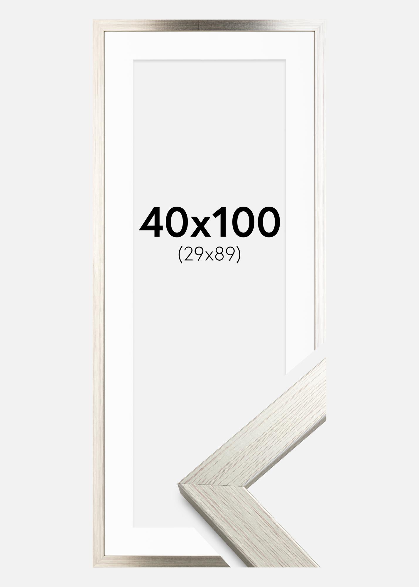 Ramme Silver Wood 40x100 cm - Passepartout Hvit 30x90 cm